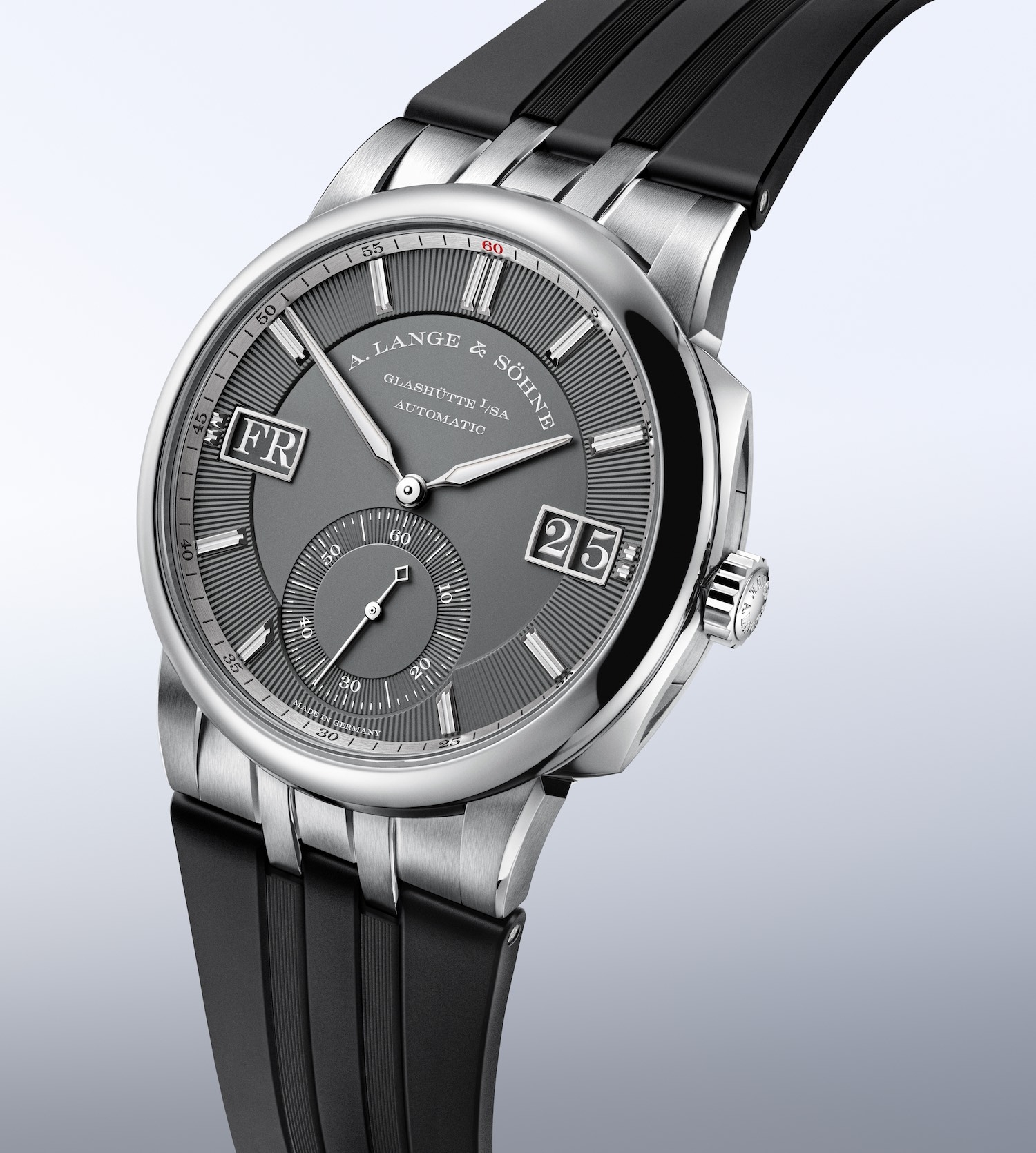 Sự khác biệt của Odysseus còn hiện lên trên mặt số đồng hồ trong tông màu xám tối trung tính. Sẽ khó lòng tìm thấy vẻ cổ điển quen thuộc trên đồng hồ A.Lange & Söhne song các ô cửa sổ kích thước lớn chỉ báo thứ và ngày được làm khung chắc chắn và sắc lẹm. Mọi chi tiết từ cọc chỉ giờ, bộ kim của chiếc đồng hồ hiện tại đều được xử lý tinh tế, và toát lên khỏi là sự mạnh mẽ cuốn hút. Tổng hoà tất cả lại, chiếc đồng hồ A.Lange & Söhne Odysseus có giá là 62.000 USD.