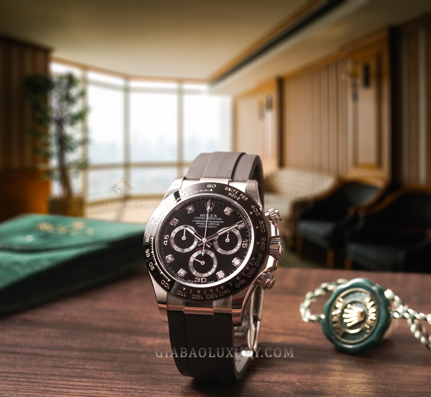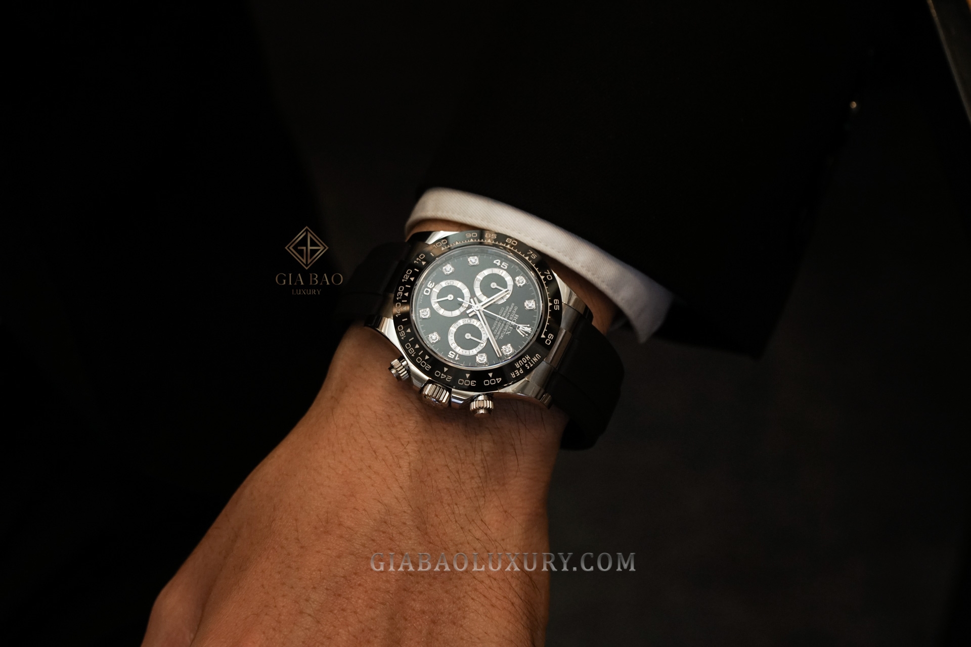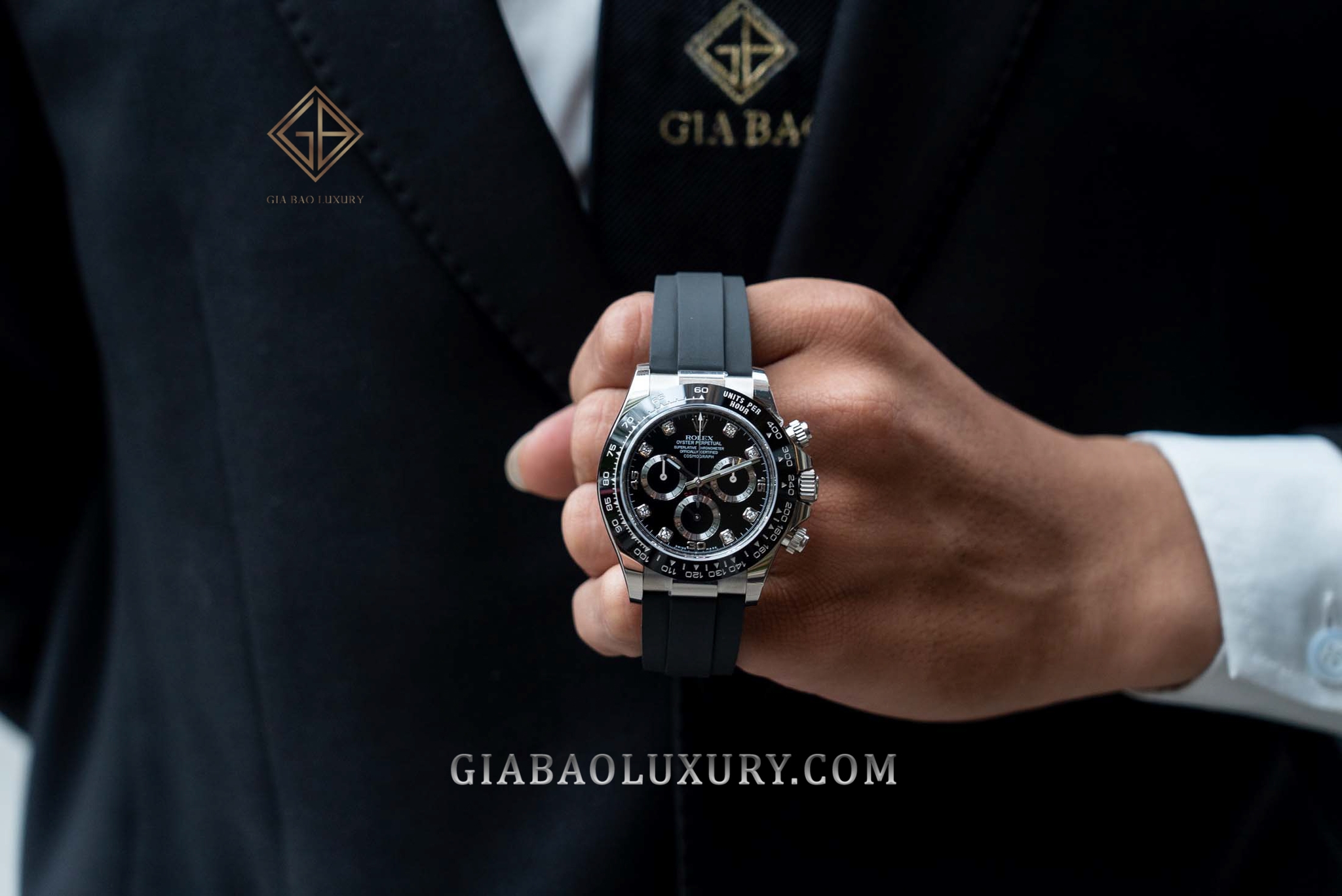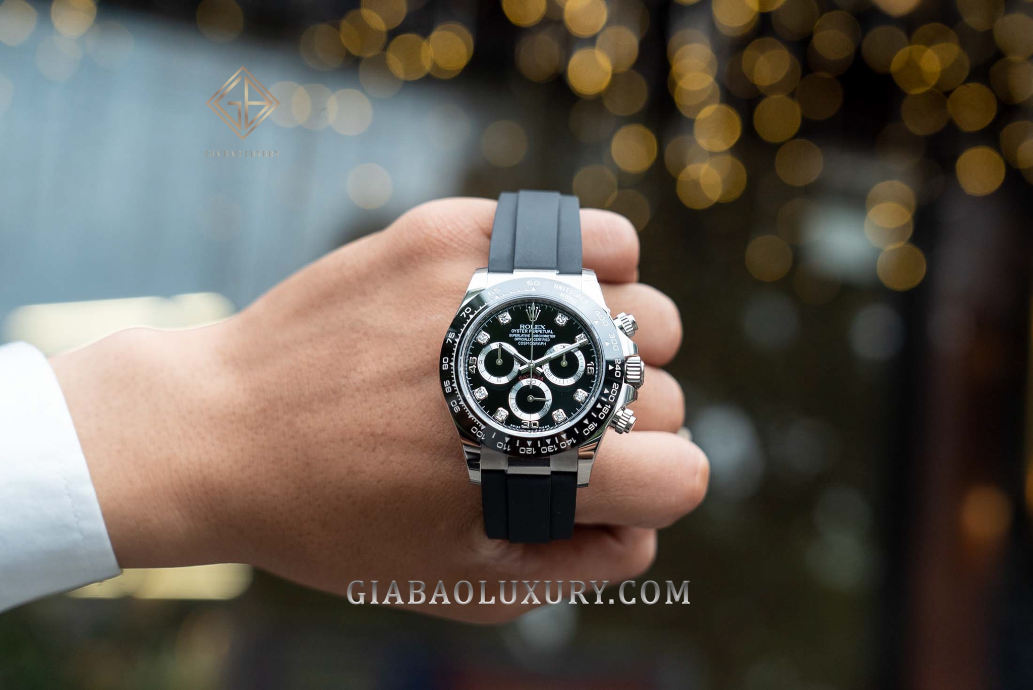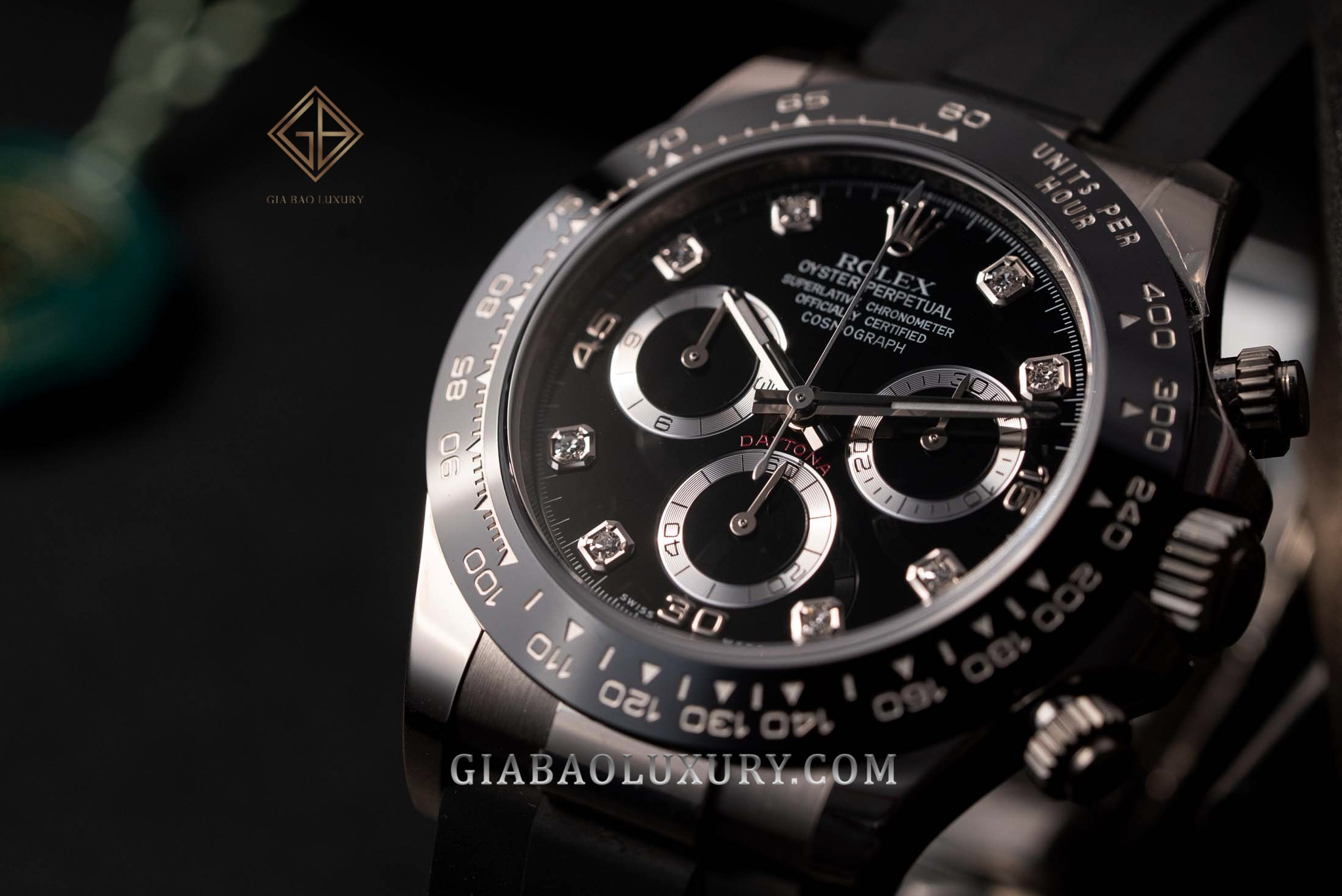 - Đồng Hồ Rolex Cosmograph Daytona 116519LN Mặt Số Đen Nạm Kim Cương