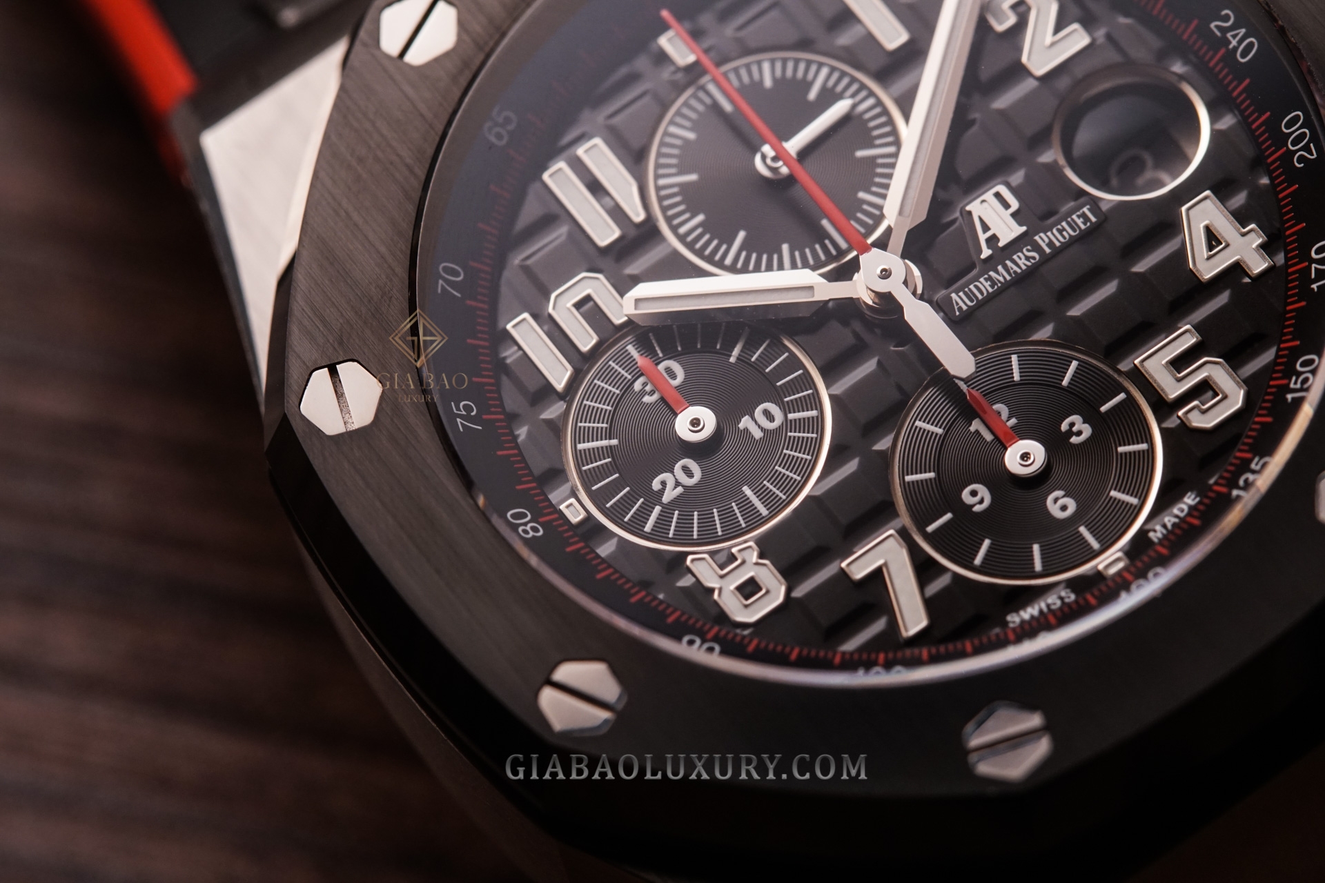 Trùng hợp thay, mặt số của chiếc Royal Oak Offshore 26470SO.OO.A002CA.01 và chiếc Daytona 116519 có tông màu khá giống nhau. Hai màu chủ đạo là đen và trắng, điểm thêm vào đó là một chút màu đỏ trên những chi tiết nhỏ.