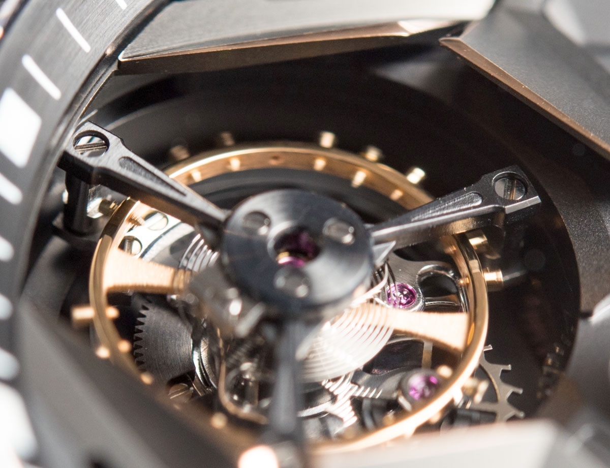 Lồng flying tourbillon không phải điểm khác biệt duy nhất có trên mẫu đồng hồ Royal Oak Concept Flying Tourbillon GMT của năm 2018. Các thay đổi đáng nhắc đến còn liên quan đến thiết kế và chất liệu cấu thành đồng hồ. Trong những cỗ máy Royal Oak Concept trước đó, nhà sản xuất đã sử dụng nhiều loại gốm cùng vật liệu lạ trong bộ máy đồng hồ như sợi carbon.