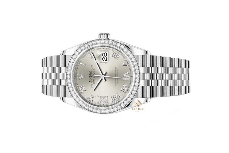 Đồng Hồ Rolex Datejust 36 126284RBR Mặt Số Bạc Cọc Số La Mã Nạm Kim Cương