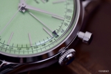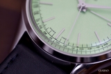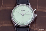 Vulcain, dòng sp Cricket President, Ref no: 100172A90.BAC301, mặt số màu xanh lá Pistachio size 36mm, máy lên cót tay, vỏ thép không gỉ 316L, dây da bê màu đen, mới 100%