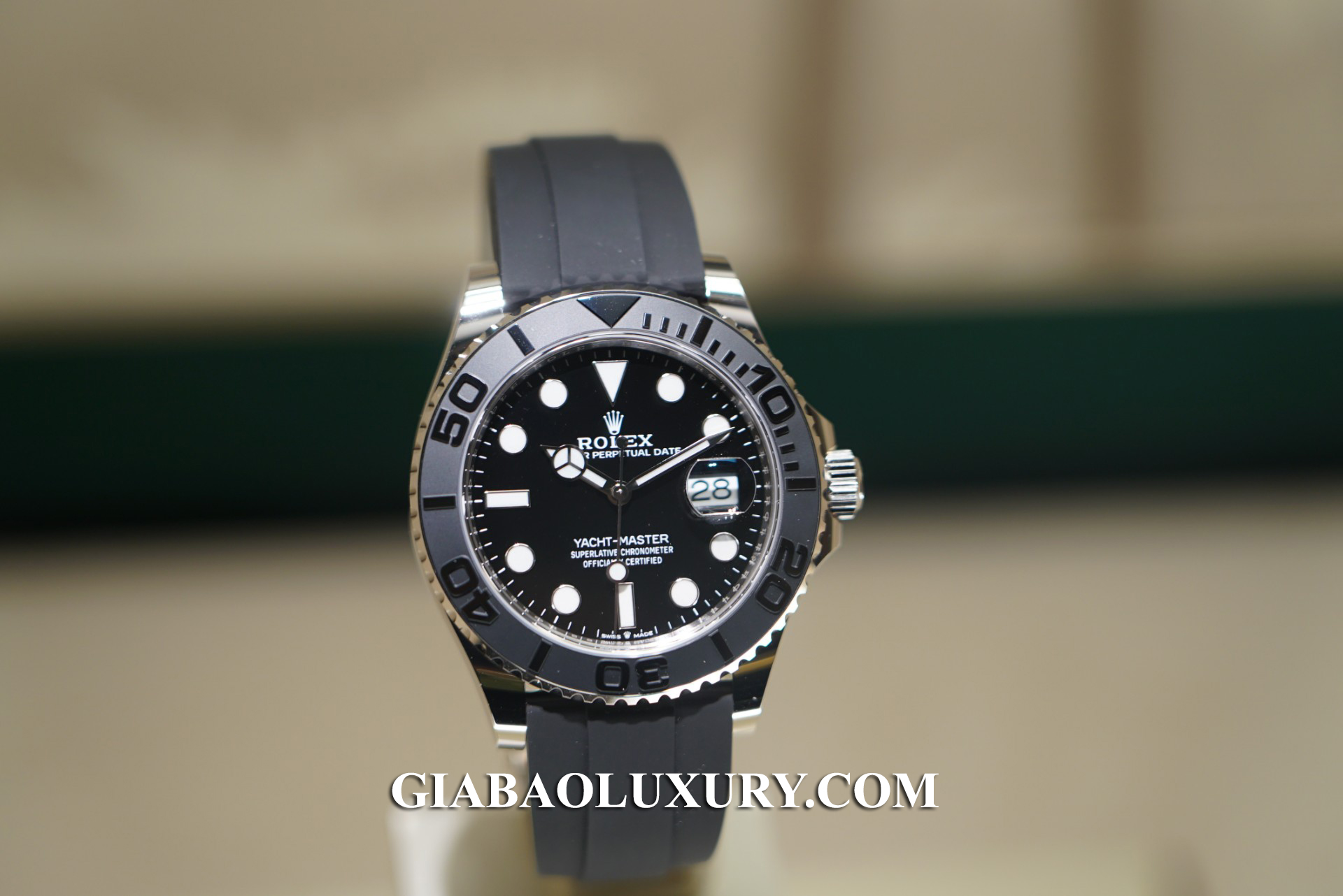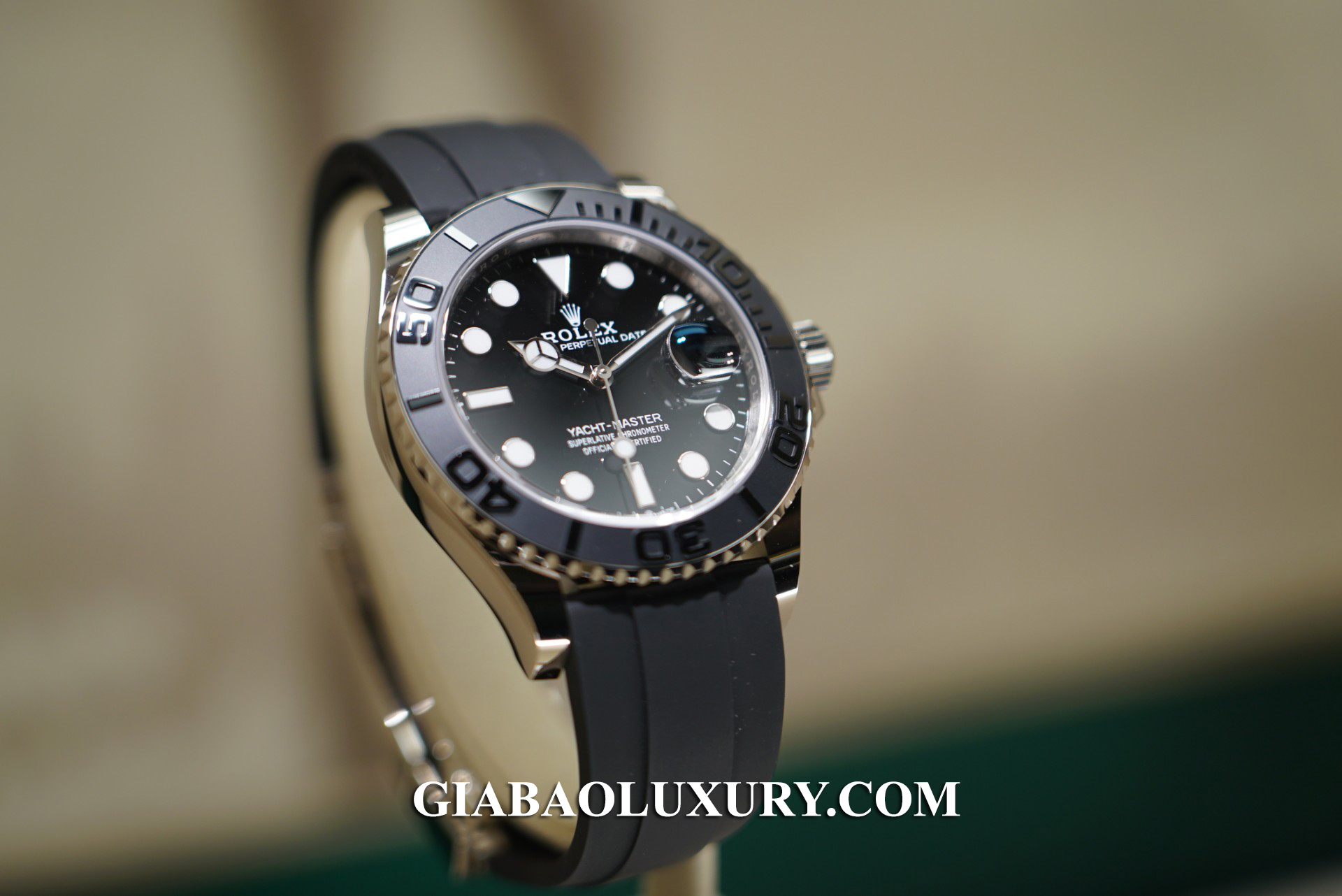 Giới thiệu đồng hồ Rolex Yacht-Master 42 226659: vàng trắng, bezel ceramic đen, dây đeo Oysterflex