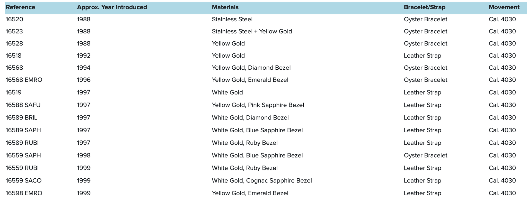 - 1988: Loạt đồng hồ Daytona thế hệ thứ hai hạ màn cùng bộ máy tự động