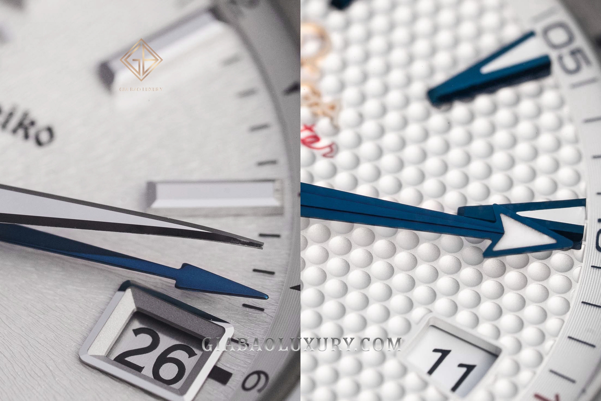 Cũng có sắc xanh trên mặt số, kim GMT và ký hiệu GMT đã được Grand Seiko là những chi tiết có màu sắc nổi bật nhất. Phần nền mặt số Grand Seiko cũng luôn khiến nhiều thương hiệu đồng hồ Thuỵ Sỹ phải khóc thét. Cụ thể, trong mẫu đồng hồ Grand Seiko Heritage SBGJ201, đó là sự có mắt của các sợi li ti, tạo nên hoạ tiết mang tính “lộn xộn" có trật tự. Về quan điểm cá nhân, tôi thực sự bị ấn tượng bởi mặt số đồng hồ Grand Seiko tạo ra trên thiết kế đồng hồ hiện tại. Nó luôn tuyệt, tuyệt hơn hẳn trong mức giá mà nhà sản xuất này cung cấp.