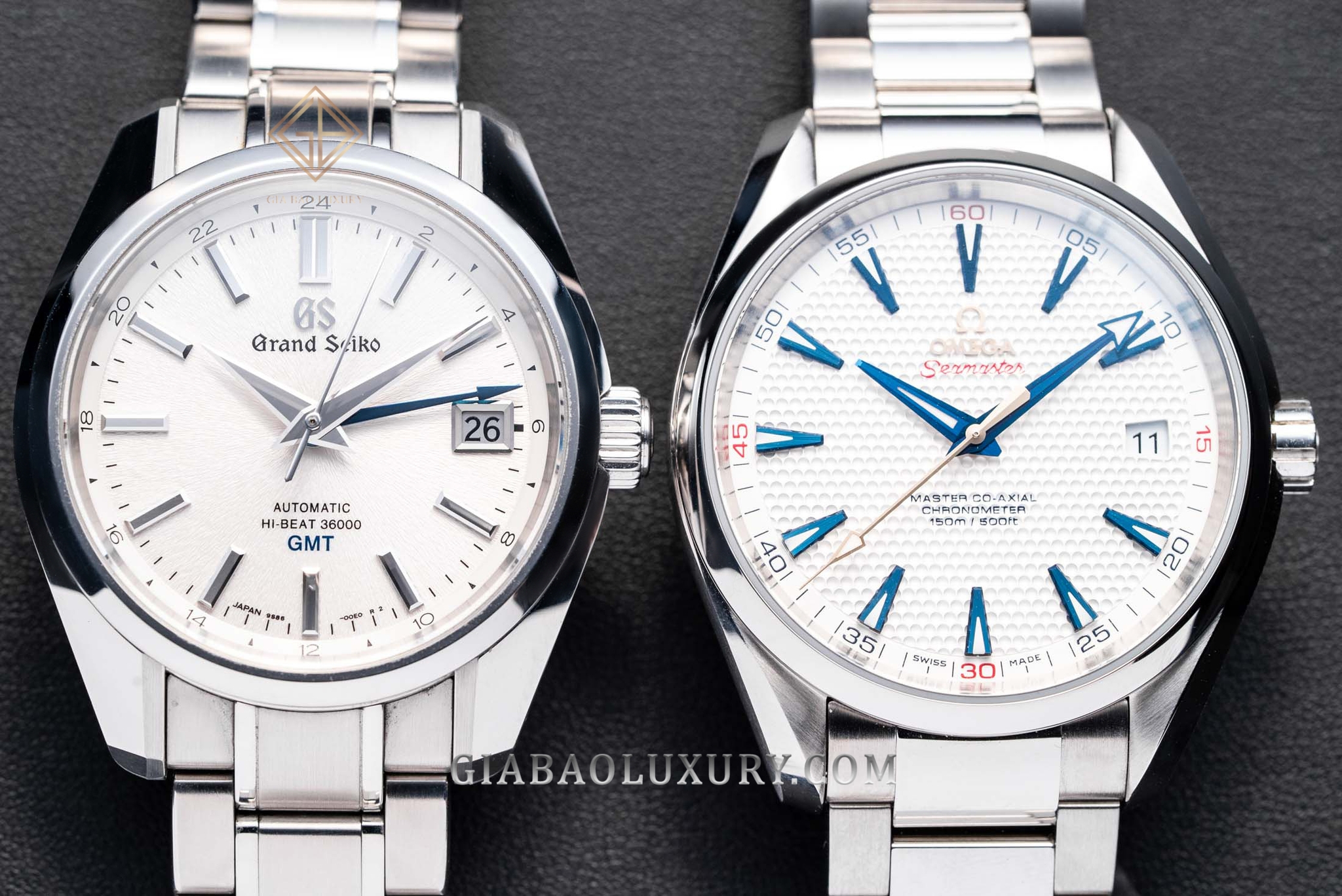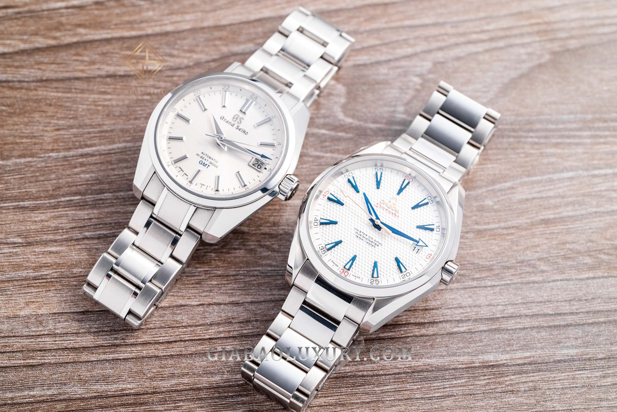 Hai nhân vật chính được nhắc đến trong bài viết này đều là con cưng của hai thương hiệu đình đám: một đại diện đến từ thiên đường đồng hồ - Omega, và một cái tên là niềm tự hào của giới chế tác đồng hồ châu Á - Grand Seiko. Cả hai thương hiệu Omega và Grand Seiko luôn có khả năng sản xuất chất lượng đã được đánh giá cao và danh mục đồng hồ cả hai cung cấp thực sự đa dạng. Thu hẹp chủ đề của bài viết này, Gia Bảo sẽ sử dụng hai hình mẫu đang có sẵn trong store của mình là: Omega Seamaster Aqua-Terra 41.5mm ref. 231.10.42.21.02.005 và Grand Seiko Heritage SBGJ201. Và giờ là lúc nhìn nhận chi tiết và khách quan hai chiếc đồng hồ này!