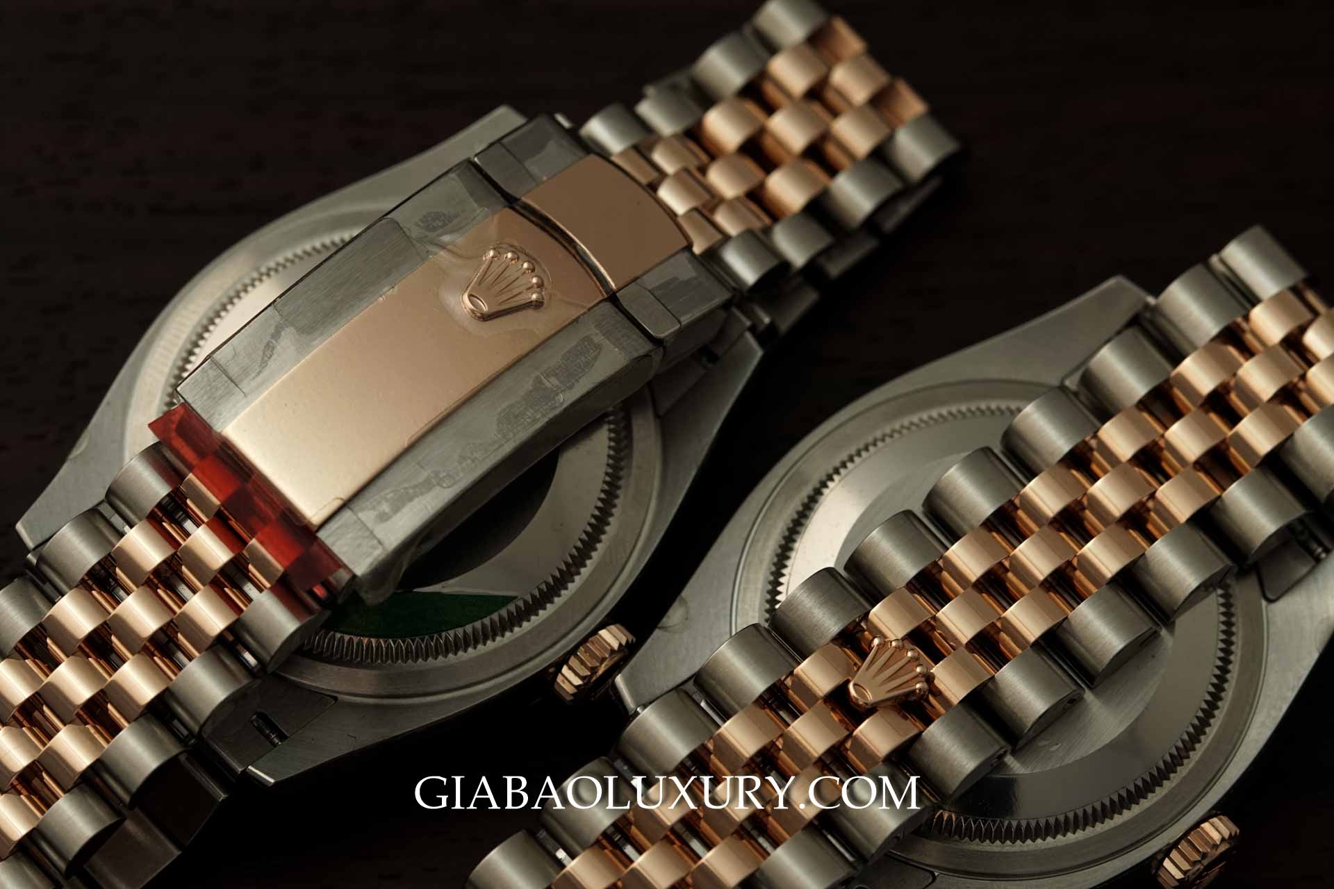 Điều đầu tiên các bạn có thể phân biệt được model mới 2018 và model tiền nhiệm ở mã Ref với đầu số là 1262xx so với 1162xx cũng giống như mẫu Datejust 41 là 1263xx và 1163xx. Cả hai chiếc đồng hồ đều là chất liệu vỏ Demi vàng hồng, mặt số vi tính nhưng vẫn có sự khác biệt.