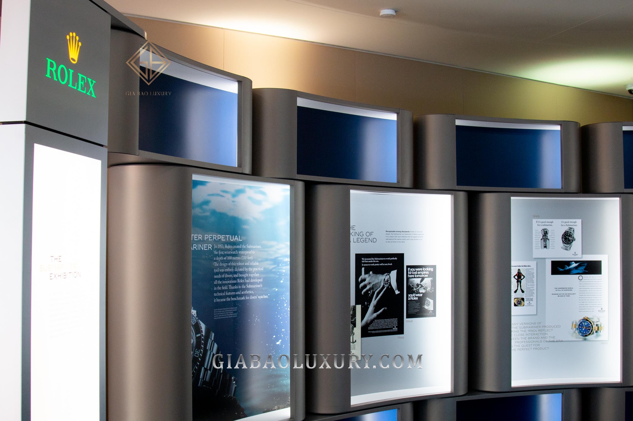 Đại diện Gia Bảo Luxury đã có một trải nghiệm thú vị với phòng trưng bày của Rolex, tại gian phòng này được chia ra làm 3 khu vực: phía bên trái là triển lãm những chiếc đồng hồ thuộc bộ sưu tập tư nhân của một đại lí bán lẻ giấu tên (khu vực trung đông) với những chiếc đồng hồ mang tính sưu tầm rất cao. Chính giữa và ấn tượng nhất là triển lãm giới thiệu về bộ sưu tập Submariner. Phía bên phải lối vào là khu vực bàn trà đón tiếp khách mời.
