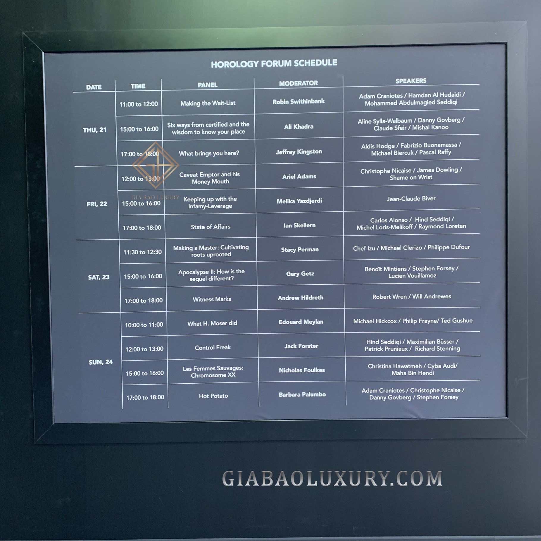 Khu vực Horology Forum nằm ngay bên phải của sự kiện DWW 2019, nơi này dành riêng cho những cuộc hội thảo xoay quanh các chủ đề về đồng hồ. Chủ đề của năm nay là “Đổi mới và Công nghệ”. Các nhà thiết kế, nhà sưu tập, nhà báo nổi tiếng đều góp mặt tại DWW 2019 với những chia sẻ thú vị.