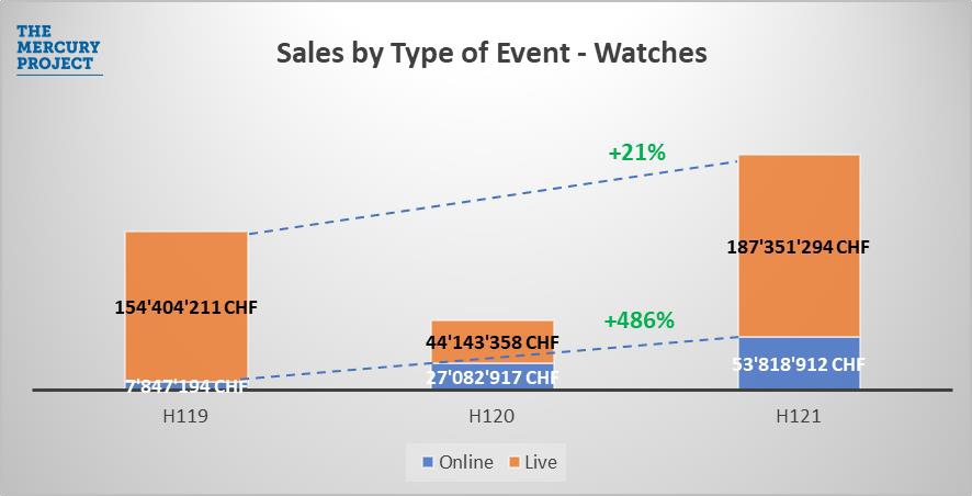 Doanh số bán hàng trực tuyến đã tăng 486%, lên 54 triệu CHF trong nửa đầu năm 2021 so với cùng kỳ của năm 2019, và chiếm 22% tổng doanh số đấu giá.