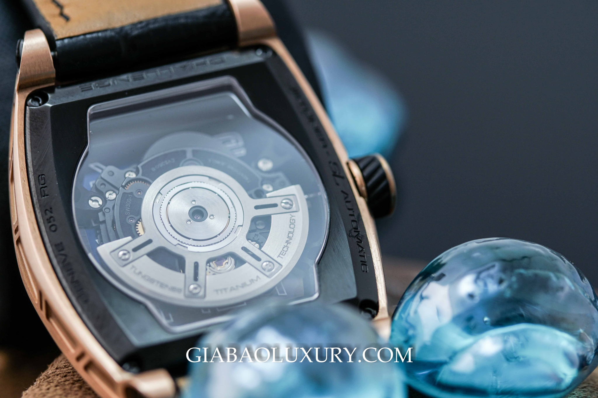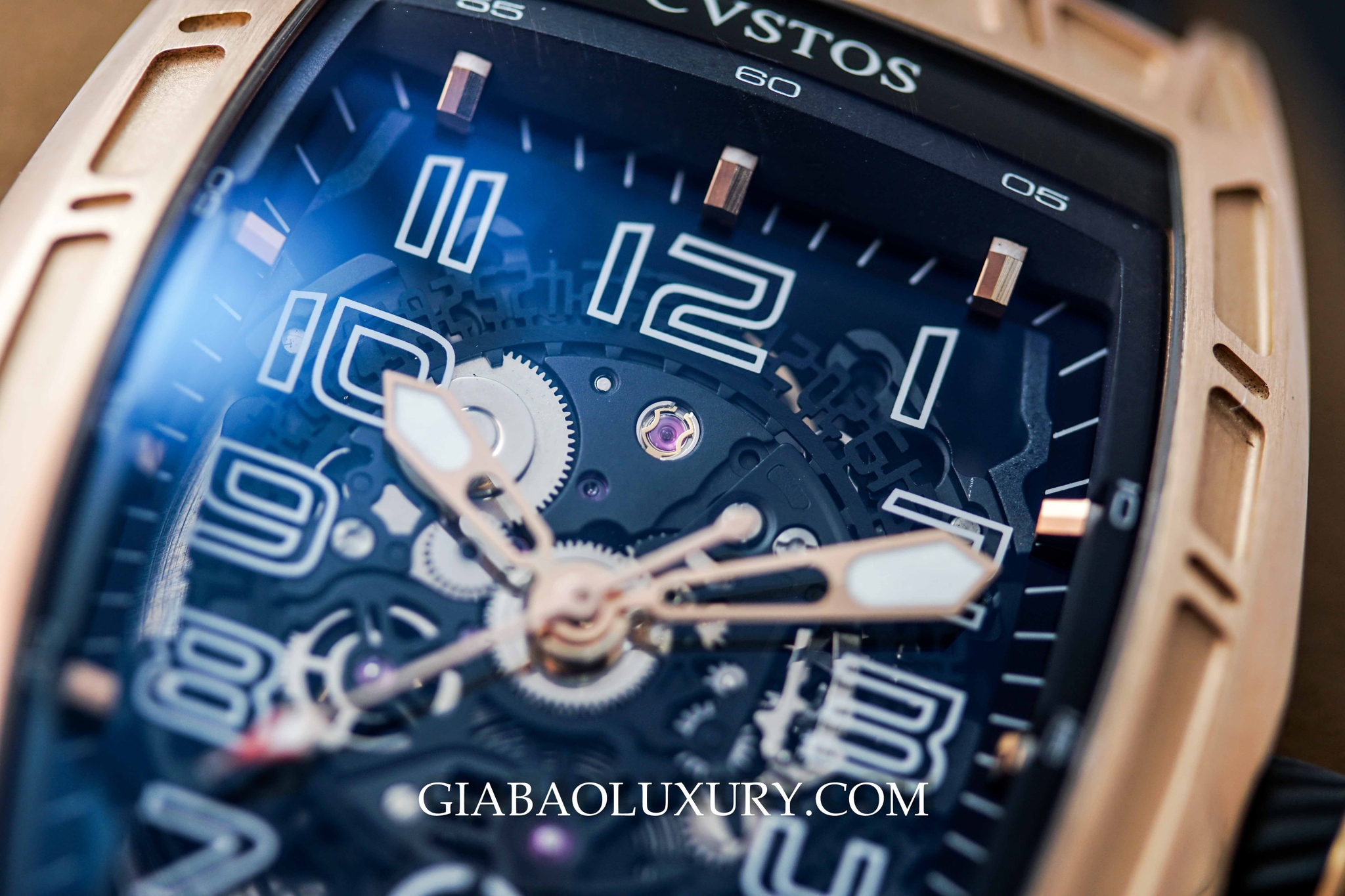 Lật mặt sau chiếc đồng hồ, chúng ta có thể dễ dàng theo dõi hoạt động của bộ máy vận hành tự động lên dây CVS350. Cỗ máy vận hành được hoàn thiện với chất liệu rhodium đen, xử lý plasma đen. Cvstos hoạt động bền bỉ với tần số dao động 28800vph trong mức dự trữ năng lượng 42h. Và để hoàn thiện cho vẻ đẹp thẩm mỹ của chiếc đồng hồ, những nghệ nhân chế tác của Cvstos đã thiết kế một số chi tiết máy theo đúng concept skeleton của Cvstos Challenge Jet-Liner SL nhưng không hề gây ảnh hưởng tới hoạt động của cỗ máy vận hành. Cỗ máy vận hành cũng được hỗ trợ khả năng chống shock tối ưu, giúp chiếc đồng hồ đo đếm thời gian chính xác với mức sai lệch là không đáng kể.