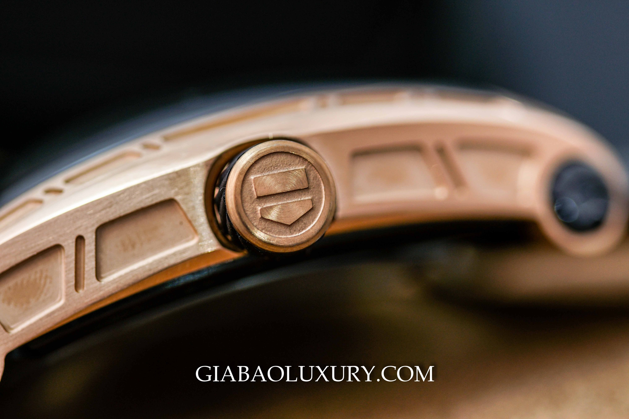 Với chất liêu dây da cá xấu khiến cho chiếc đồng hồ trở nên vô cùng sang trọng, dây da cá xấu không những bền, đẹp mà lại mang lại cảm giác êm ái khi đeo đeo trên cổ tay. Khi chúng ta nhìn chiếc đồng hồ từ xa, chắc chắn nhiều người sẽ nghĩ đây là một thiết kế đồng hồ thể thao hiện đại. Nhưng khi quan sát ở cự li gần, chúng ta sẽ có một vài liên tưởng đây là một chiếc đồng hồ với phong cách Art Deco cổ điển (mà như chúng tôi đã nói ở trên nó được lấy cảm hứng từ phong cách đồng hồ đeo tay những năm 1920) giống những thiết kế nổi tiếng của Frank Muller hay Girrard Peregaux.