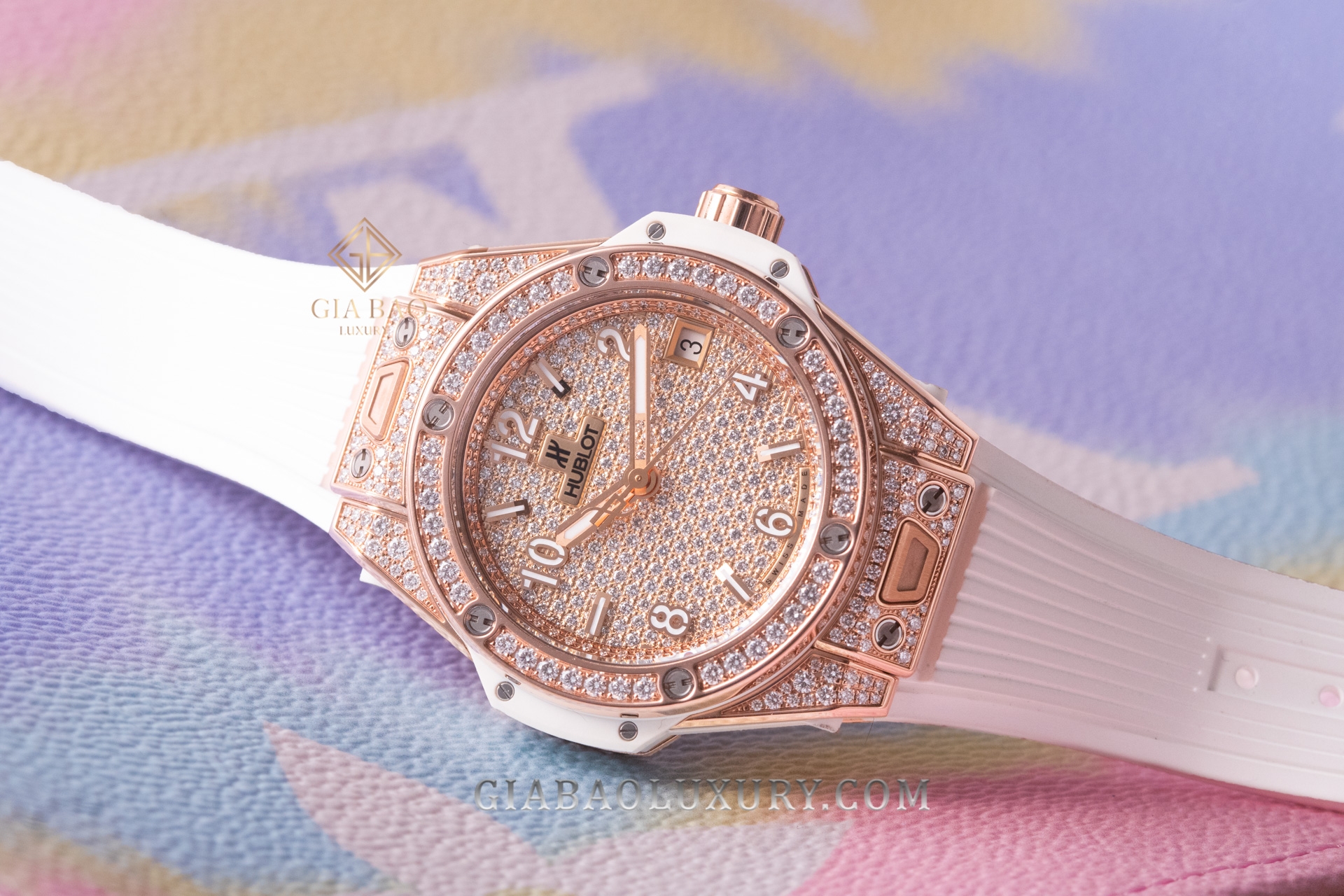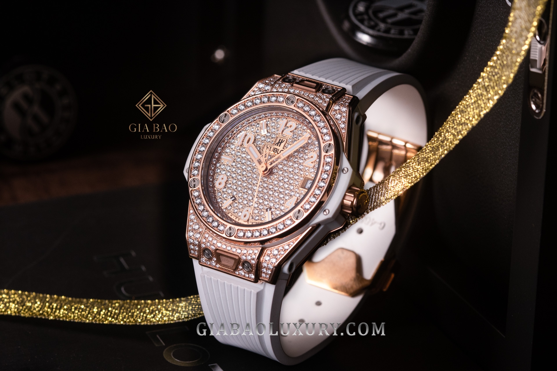 Thời thế đã thay đổi, nữ giới không nhất thiết phải đeo một chiếc đồng hồ nữ. Phái nữ tìm kiếm một chiếc đồng hồ mang xu hướng cân bằng, unisex. Ví như Daytona, phiên bản đồng hồ nam tính và thể thao đã trở thành bạn đồng hành của rất nhiều siêu mẫu, nữ diễn viên như Elle Macpherson, Victoria Beckham,... Theo đó, một phiên bản đồng hồ Big Bang đường kính 39mm, có dây đeo cao su cùng vô tiền khoáng hậu kim cương như Hublot Big Bang One Click King Gold White Full Pavé 39mm 465.oe.9010.rw.1604 là một sự lựa chọn mang tính thách thức với nữ giới Á Đông.