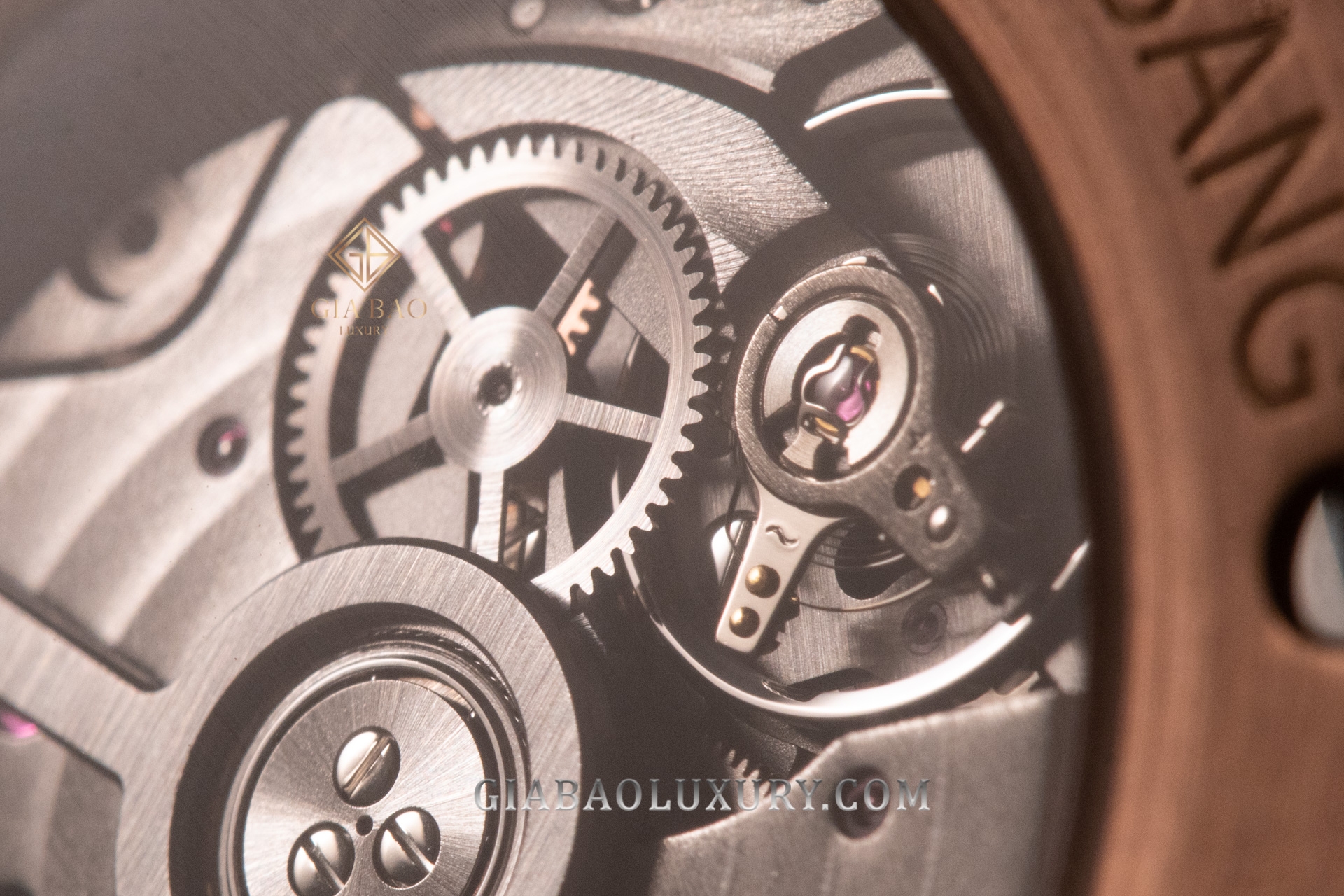 Cung cấp năng lượng cho đồng hồ vận hành là bộ máy Hublot Caliber HUB1710 có 185 chi tiết nằm bên trong lớp vỏ chắc chắn. Tiết lộ một phần chi tiết máy như Rotor với dấu ấn thương hiệu Hublot, những bánh răng chạy truyền, tấm khung chính và chân kính hồng đã hoàn thiện hơn vẻ đẹp cơ khí của mẫu đồng hồ Hublot Big Bang 465.oe.9010.rw.1604. Hiện tại, mẫu đồng hồ này có thể vận hành trong khoảng 50 giờ đồng hồ.