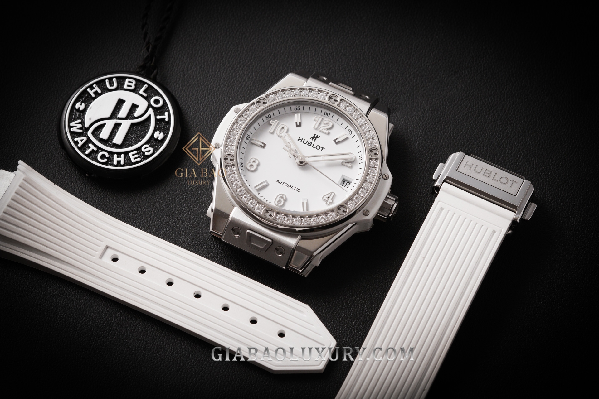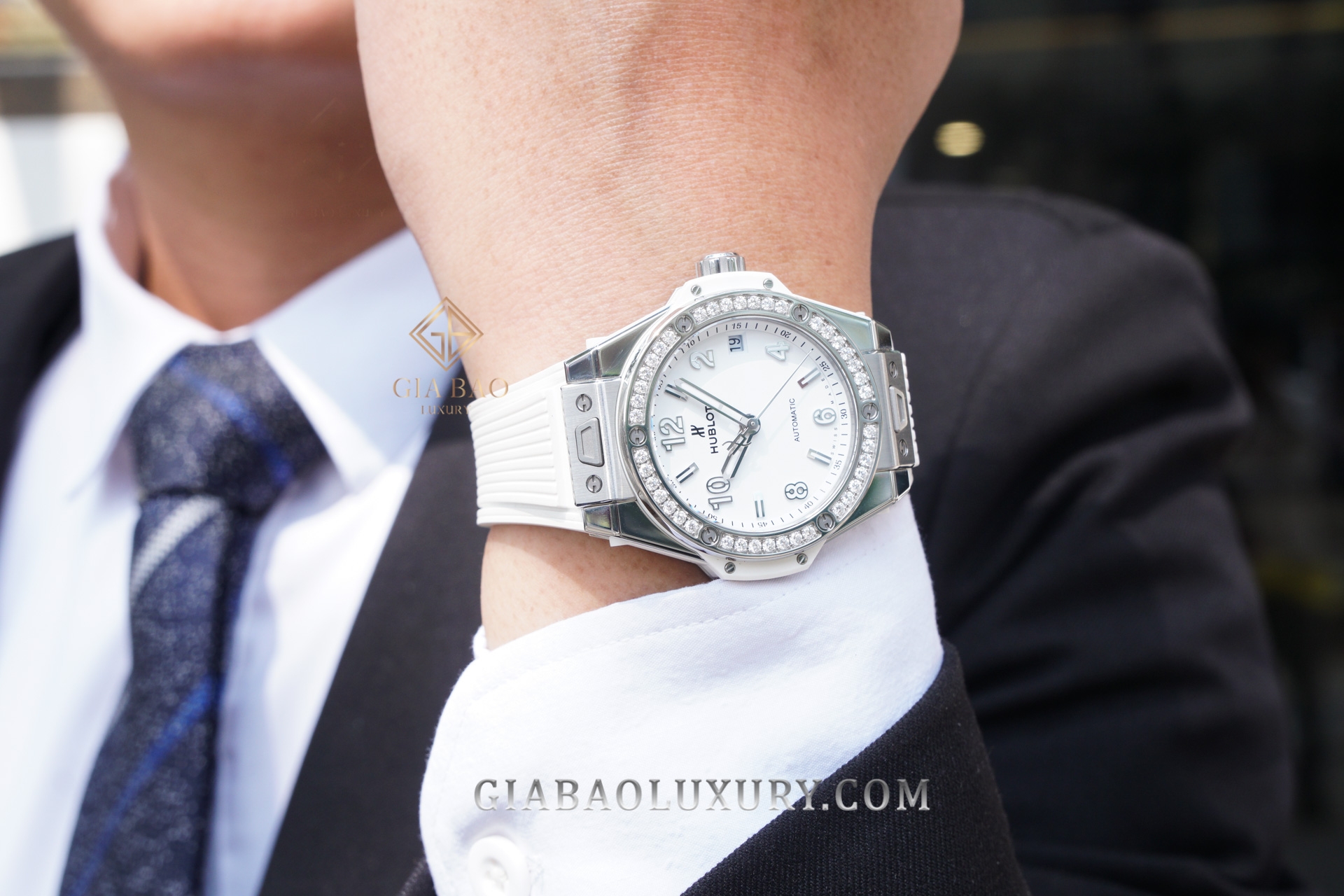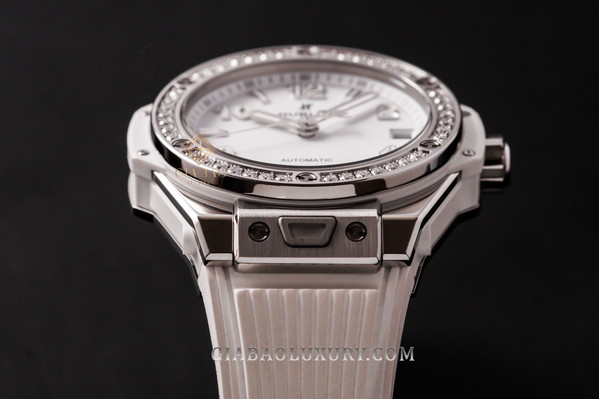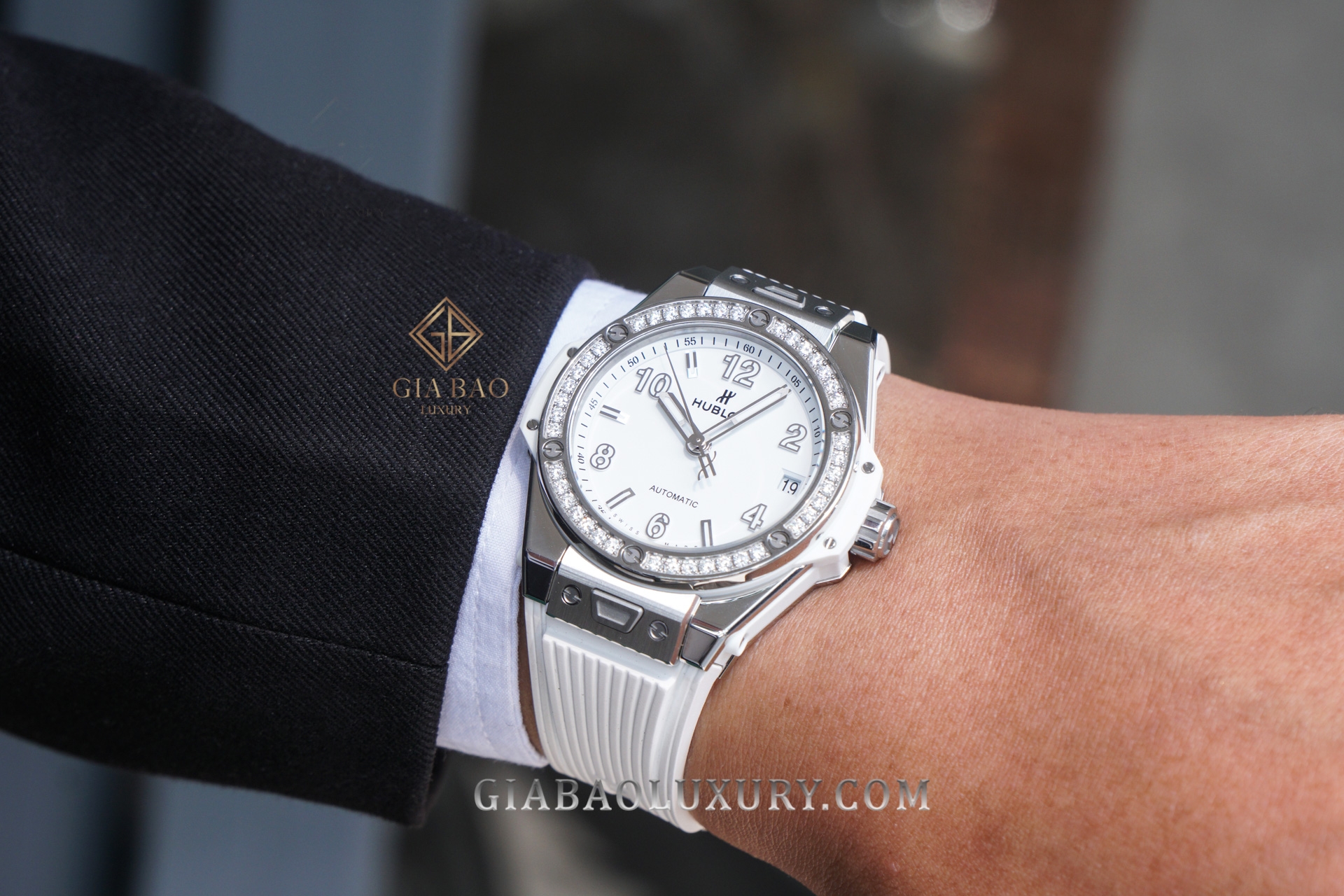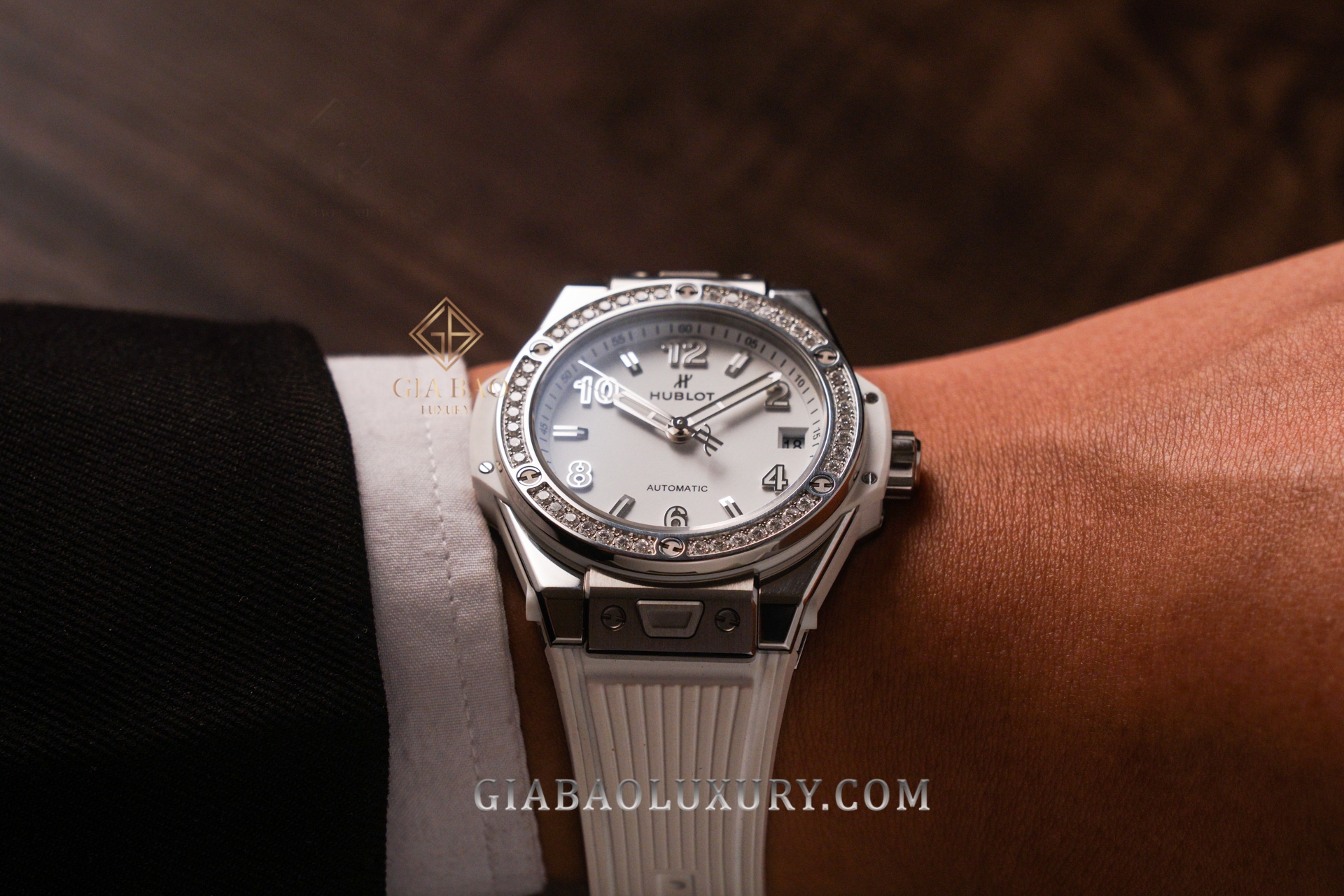 Mẫu đồng hồ Hublot Big Bang One Click Steel White Diamonds hiện tại có mặt số màu trắng, vỏ khung màu bạc nên thoải mái thay đổi dây đeo sắc màu tùy vào sở thích của người đeo. Nếu là nữ giới, bạn có thể đeo dây màu nữ tính như hồng, còn nếu là nam giới, có thể lựa chọn dây đeo màu đen. (Mặc dù kích thước 39mm tại phương Tây là dành cho nữ giới, song tại Phương Đông, cổ tay nam giới vẫn rất phù hợp với kích thước này).