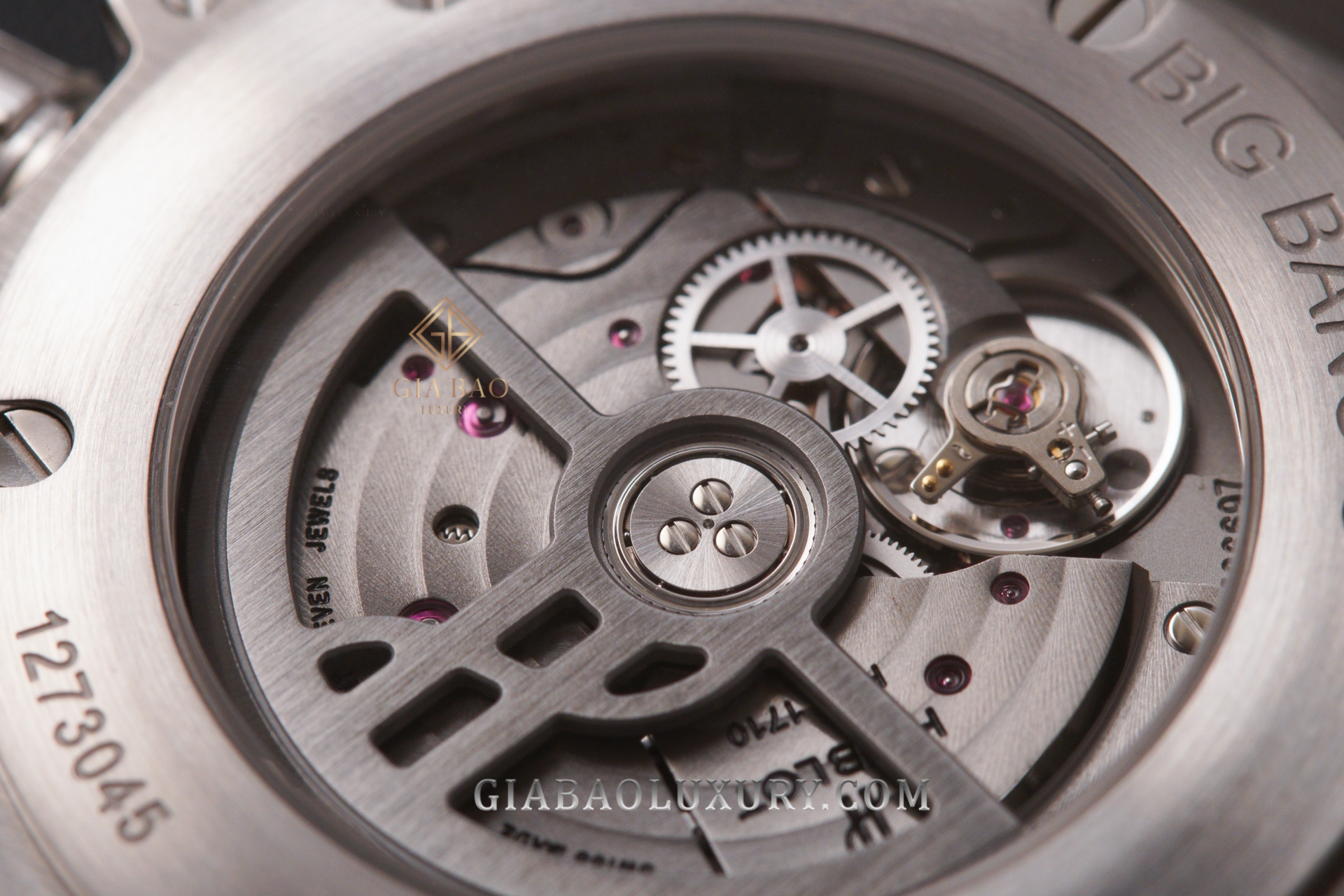 Caliber HUB1710 gõ 28.800 nhịp/giờ với 185 chi tiết và 27 chân kính chính là bộ máy tự động cung cấp năng lượng cho cả mẫu đồng hồ Hublot Big Bang One Click Steel White Diamonds. Rotor có thể quan sát tại đáy đồng hồ di chuyển qua lại có thể lên cót trong vòng 50 giờ đồng hồ, một mức dự trữ năng lượng tiêu chuẩn trong thời điểm hiện tại.
