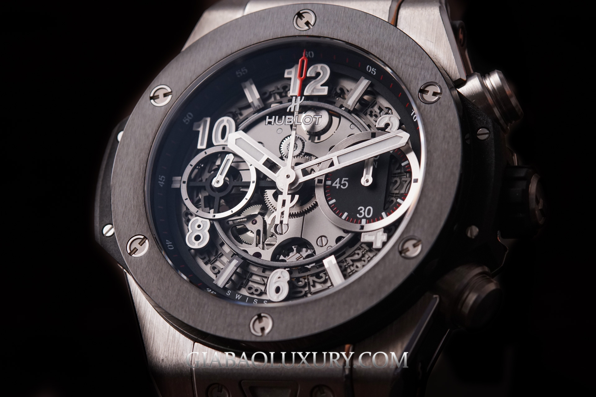Mặt số Skeleton có một nhược điểm là quá rắc rối, và nếu không thiết kế hợp lý sẽ khiến người dùng bị loạn. Tuy nhiên, điều này không xảy ra trên chiếc Hublot Big Bang Unico Titanium Ceramic 42mm. Hệ thống kim và cọc số đều được thiết kế lớn và sử dụng nhiều chất phát quang, do đó việc xem giờ sẽ rất dễ dàng kể cả trong điều kiện thiếu ánh sáng.
