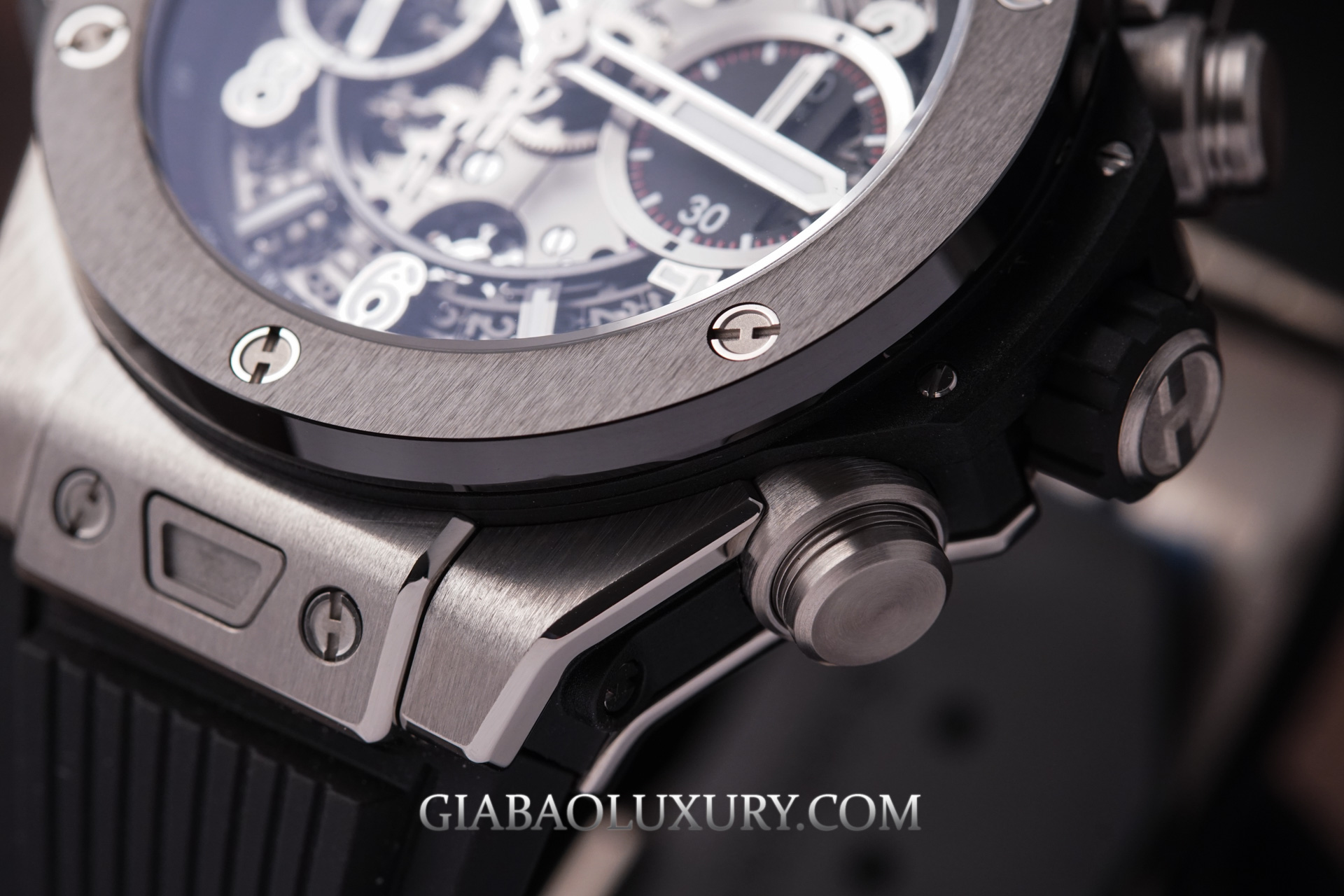Bao bọc quanh lớp kính Sapphire chống xước là vành Ceramic màu đen, và đây cũng là một chất liệu hiện đại thường xuyên xuất hiện trên những mẫu đồng hồ Hublot. Ceramic có thành phần chính là ZrO2, hay được người chơi ở Việt Nam gọi là gốm. Tất nhiên, chất liệu gốm Ceramic không hề mong manh dễ vỡ giống gốm sứ Bát Tràng, mà thay vào đó có độ cứng rất cao, chống trầy xước hoàn hảo.
