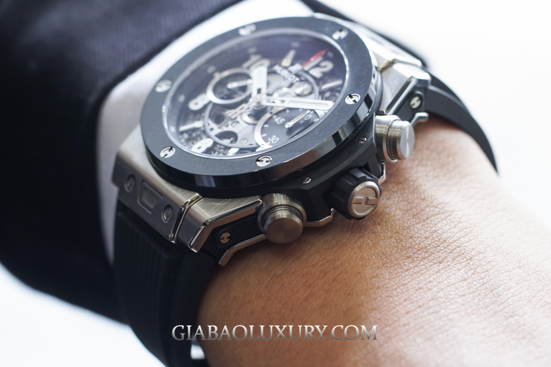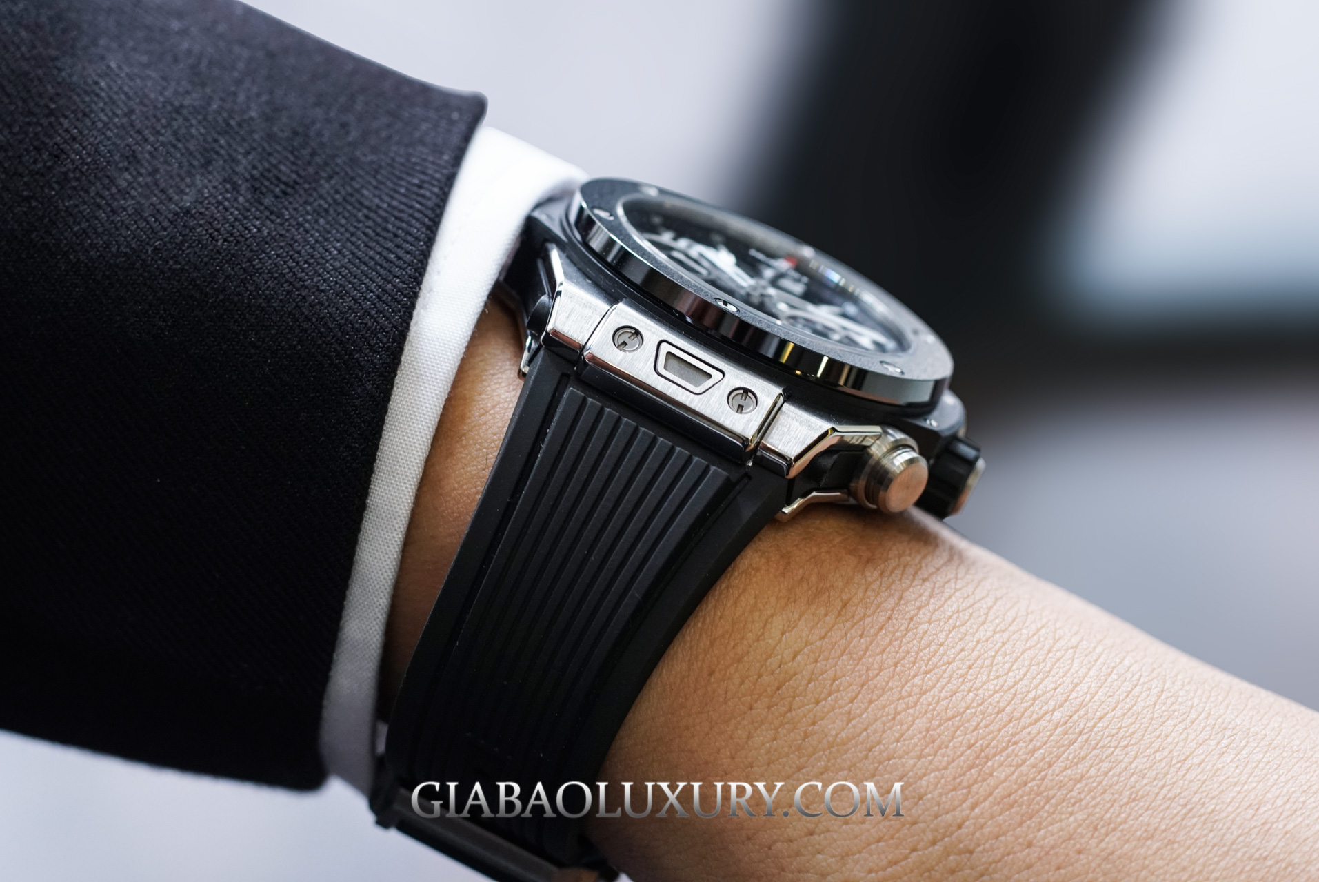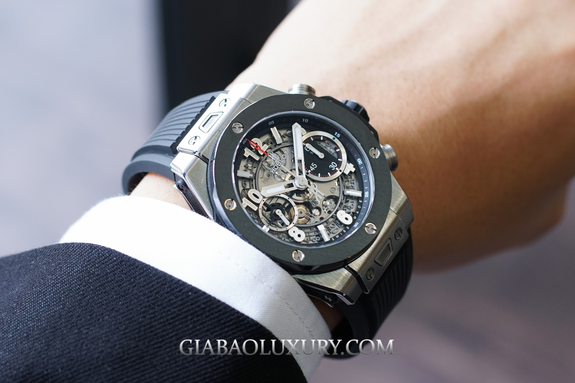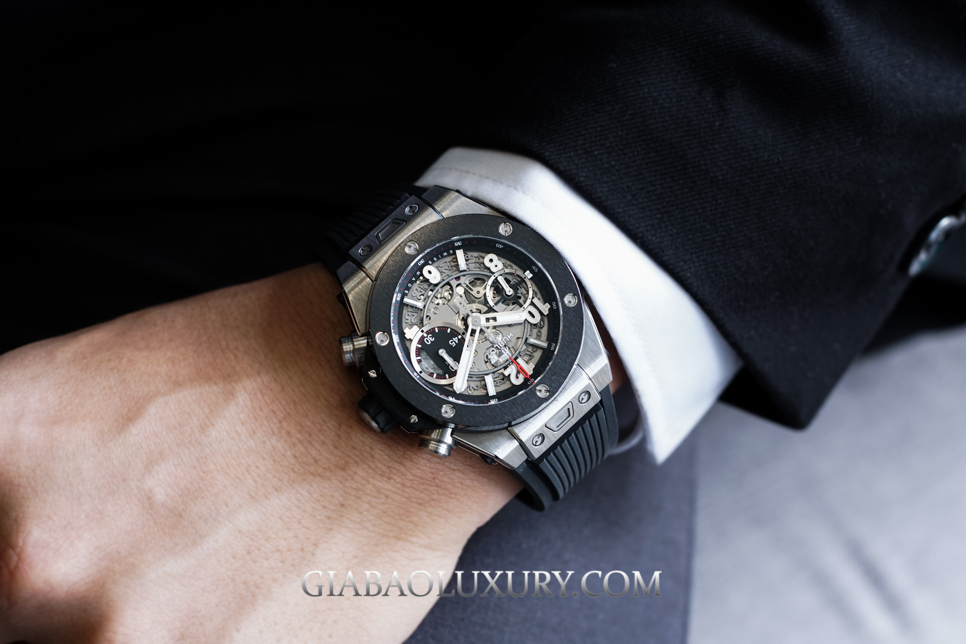 Như đã nói ở phần đầu bài viết, kích thước 42mm của chiếc Hublot Big Bang Unico Titanium Ceramic cực kỳ phù hợp với cổ tay người châu Á. Thiết kế này sẽ thực sự hoàn hảo nếu kết hợp với những bộ đồ thể thao năng động, nhưng bạn cũng có thể thấy rằng việc mặc vest đeo chiếc đồng hồ này cũng không tồi chút nào.