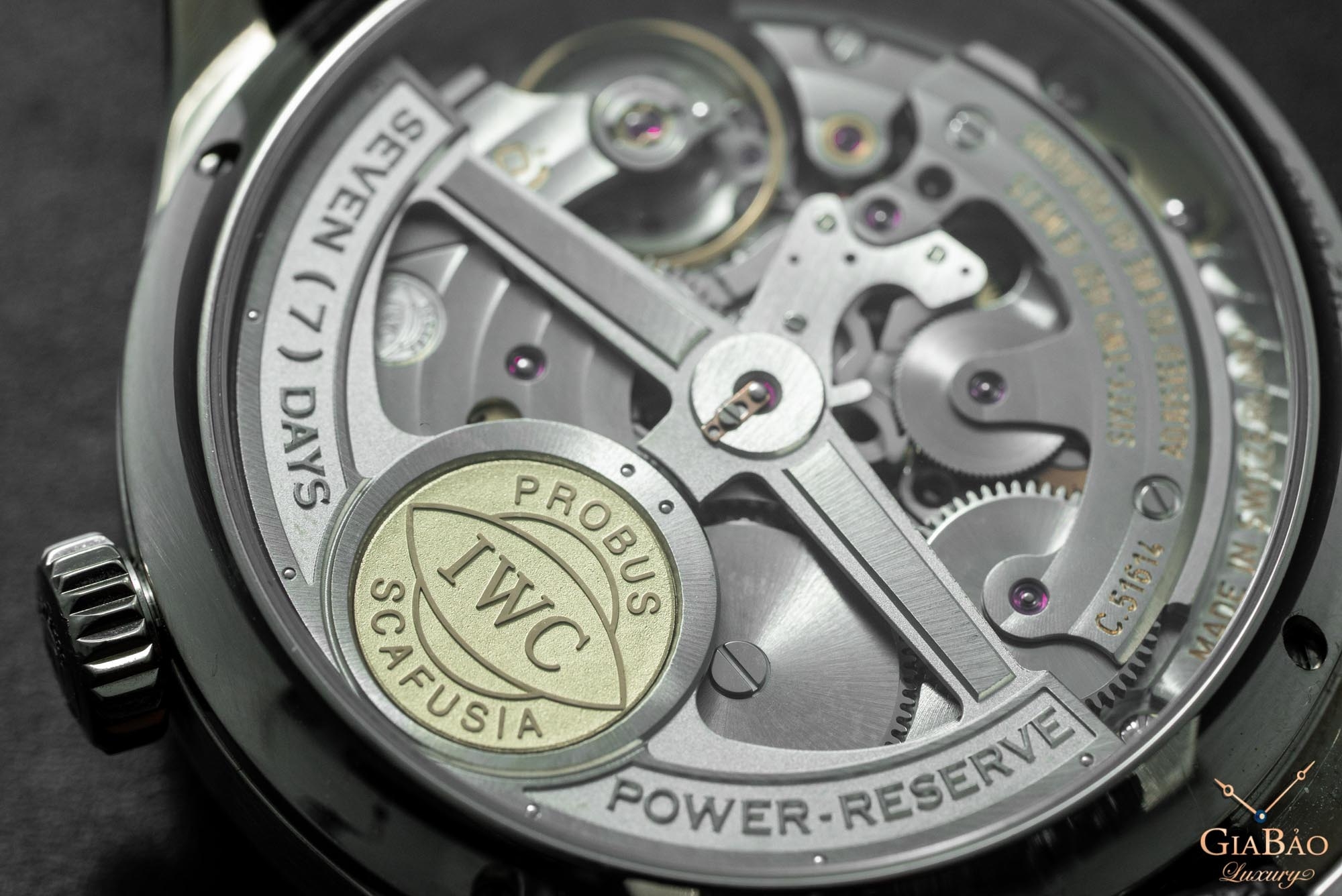 Tạo niên sự chính xác tuyệt vời bên trên chính là nhờ vào bộ máy tự động caliber 51614 được sản xuất bởi chính IWC. Bộ máy caliber 51614 là một phiên bản cải tiến của bộ máy caliber 5000 được trang bị cơ chế Lịch vạn niên vốn được phát riển bởi Kur Klaus và đội ngũ của ông. Với việc trang bị một rotor kích thước lớn, một hệ thống lên cót hai chiều được phát minh bởi nghệ nhân đồng hồ tài năng Albert Pellaton, hộp cót của cỗ máy IWC Portuguese có thể được lên từ cả hai chiều. Gõ 21.600 nhịp/giờ, bộ máy caliber 51614 có thể cung cấp nâng lượng cho cả chiếc đồng hồ vận hành trong vòng 168 giờ đồng hồ (tương đương 7 ngày liên tiếp).