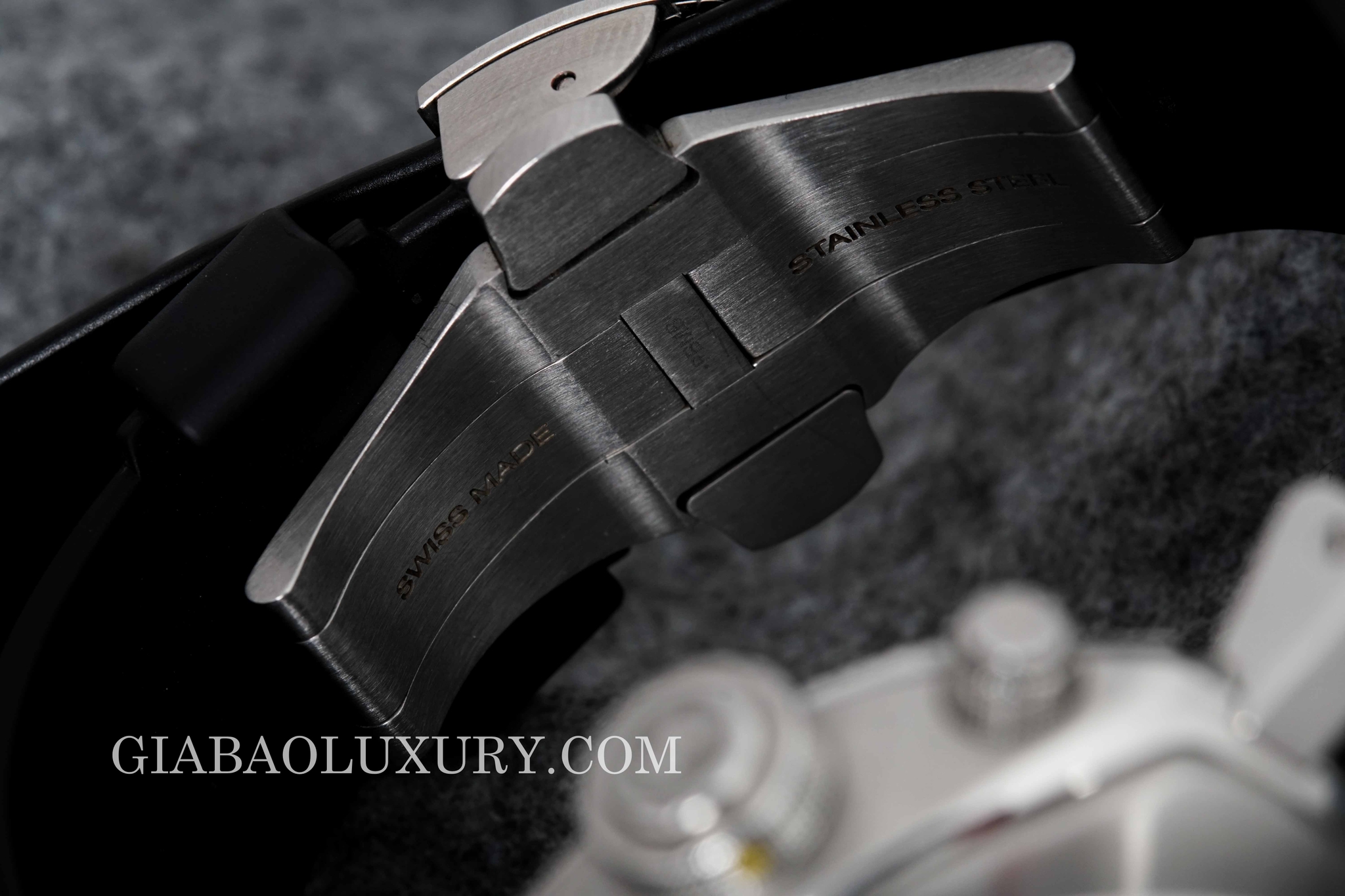 Panerai Ferrari Scuderia Rattrapante Chronograph sử dụng chất liệu thép không gỉ cho chế tác mặt số cũng như những chi tiết phụ khác. Thép không gỉ có độ bền cao, khả năng chống chọi với mọi loại điều kiện môi trường bền bỉ và màu sắc tự nhiên cũng rất phù hợp với dòng đồng hồ thể thao, nên Officine Panerai đã lựa chọn thép cho chiếc đồng hồ này. Phần dây đeo tay được thiết kế từ cao su, mang lại tổng thể khỏe khoắn, mạnh mẽ mà hết sức thu hút cho chiếc đồng hồ.