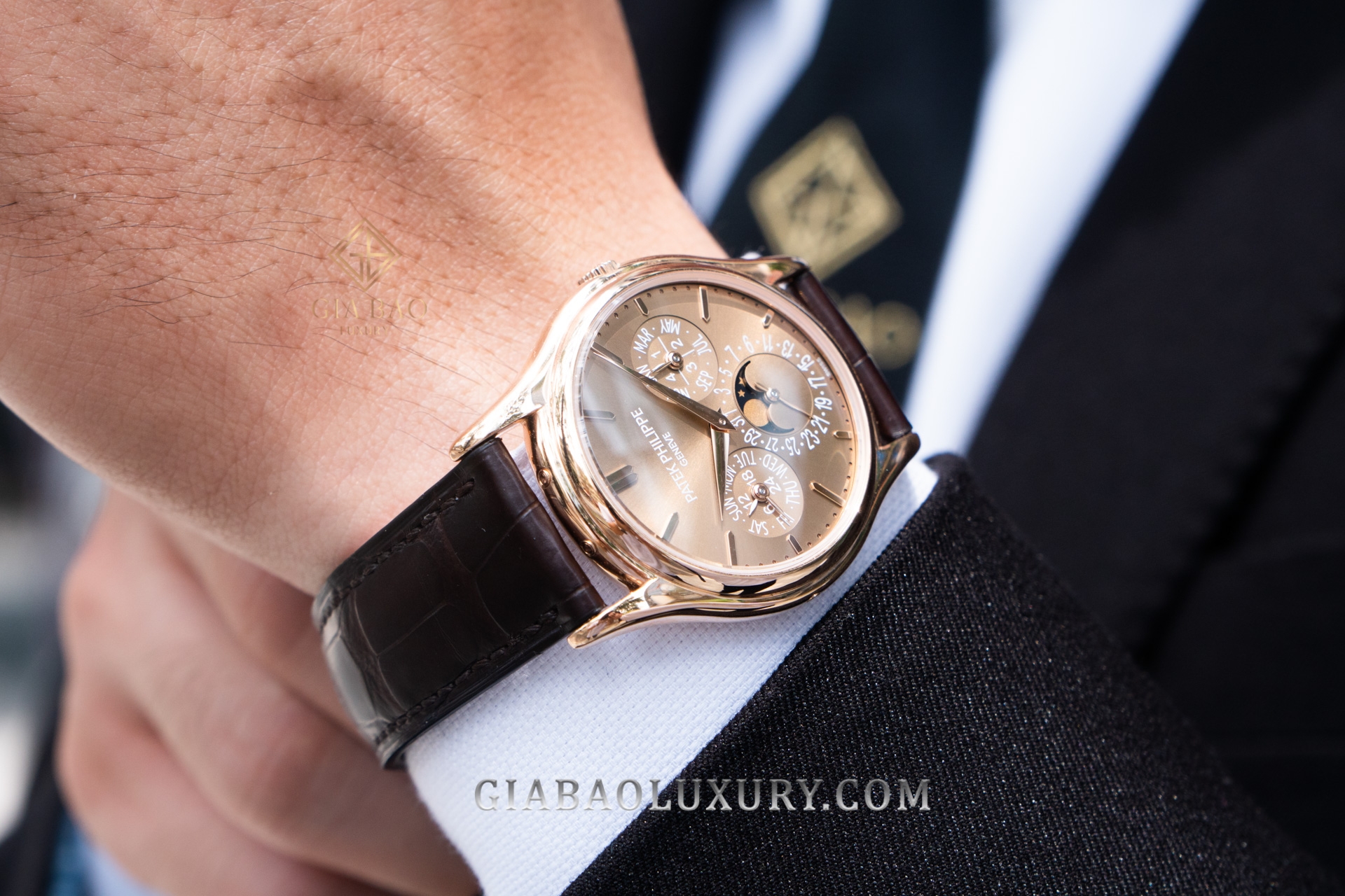 Vỏ vàng hồng và mặt số nâu từ lâu đã là sự kết hợp kinh điển của làng đồng hồ, mỗi mẫu đồng hồ vàng hồng nào cũng phải có một phiên bản mặt số màu này. Chiếc 5140R-001 cũng là minh chứng cho điều đó, với tông nâu hơi ánh vàng và sự hoàn thiện cực kỳ tỉ mỉ.