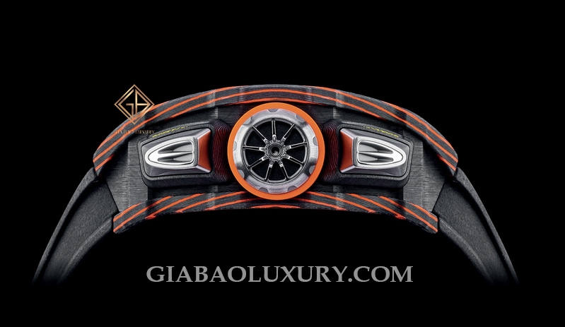 Là sự hợp tác chiến lược của cả hai hãng đồng hồ Richard Mille và siêu xe Mclaren, chiếc Richard Mille RM 11-03 này được thừa hưởng rất nhiều đường nét có cảm hứng từ những mẫu siêu xe Mclaren, cụ thể ở đây là chiếc McLaren 720S. Đầu tiên có thể kể đến vành bezel được cảm hứng từ những chiếc lốp xe. Núm chỉnh giờ thì như một chiếc bánh xe thu nhỏ, kể cả "lazang" cũng được làm cực kỳ chi tiết và đẹp, hai núp bấm của flyback chronograph cũng có cảm hứng từ hai ống xả rất ấn tượng. Chi tiết trang trí hình chữ “U” bằng titanium trên vành bezel được tạo hình theo ống hút gió trên ca-pô trước của siêu xe huyền thoại McLaren F1, có chèn thêm logo “McLaren” đầy tinh tế.