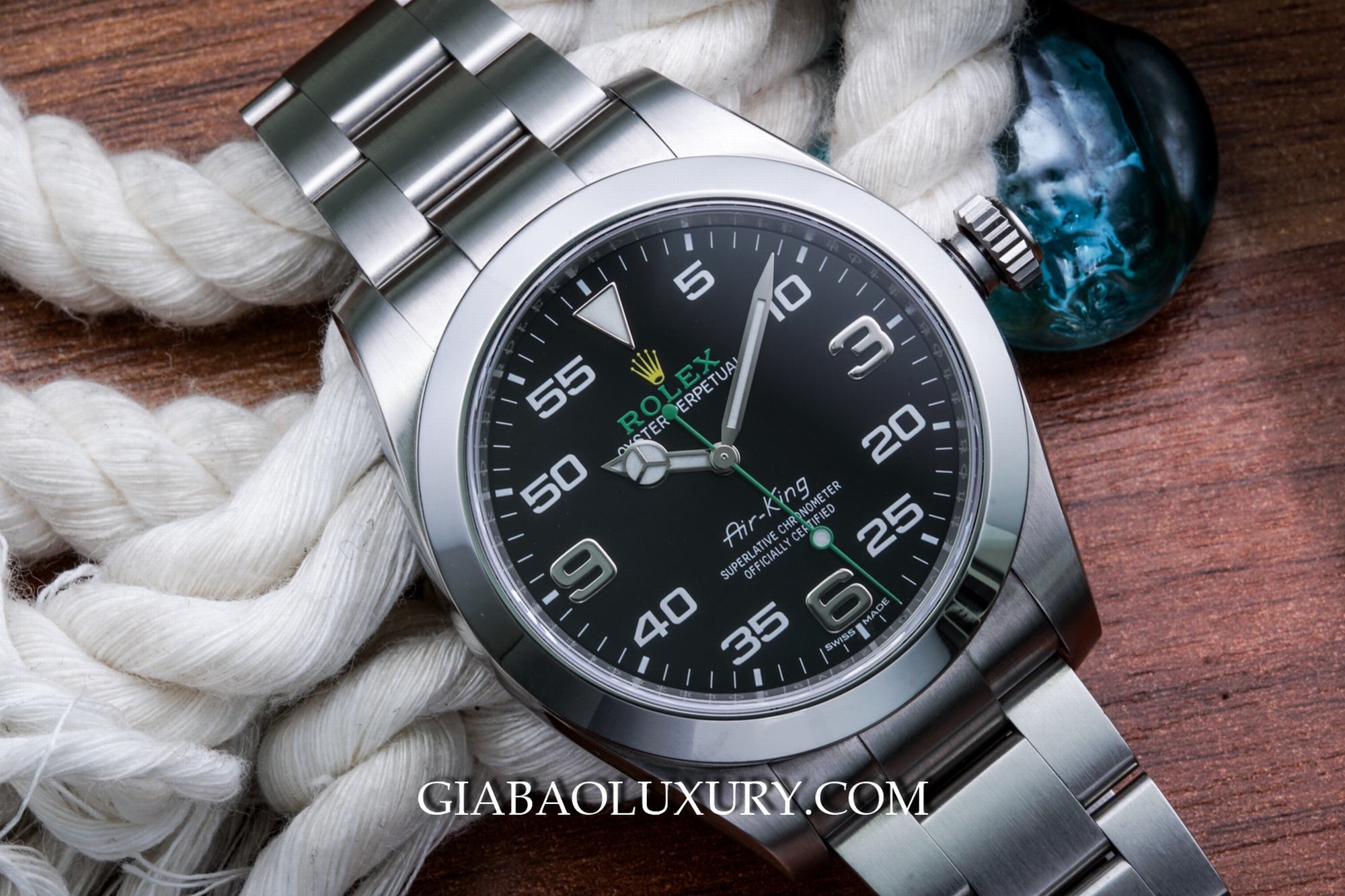 Chiếc đồng hồ Rolex Air-King đầu tiên xuất hiện từ những năm 1950 với thiết kế dành riêng cho ngành hàng không. Tại thời điểm đó, Rolex là một trong những nhà tiên phong phát triển ngành đồng hồ chuyên dụng này. Và Rolex cũng là nhà đồng hành cùng những phi công bay qua đỉnh Everest đầu tiên trên thế giới với độ cao 10.000m. Chiếc Rolex Air-King 116900 xuất hiện năm 2016 với nhiều cải tiến nay đã có mặt tại Gia Bảo Luxury.