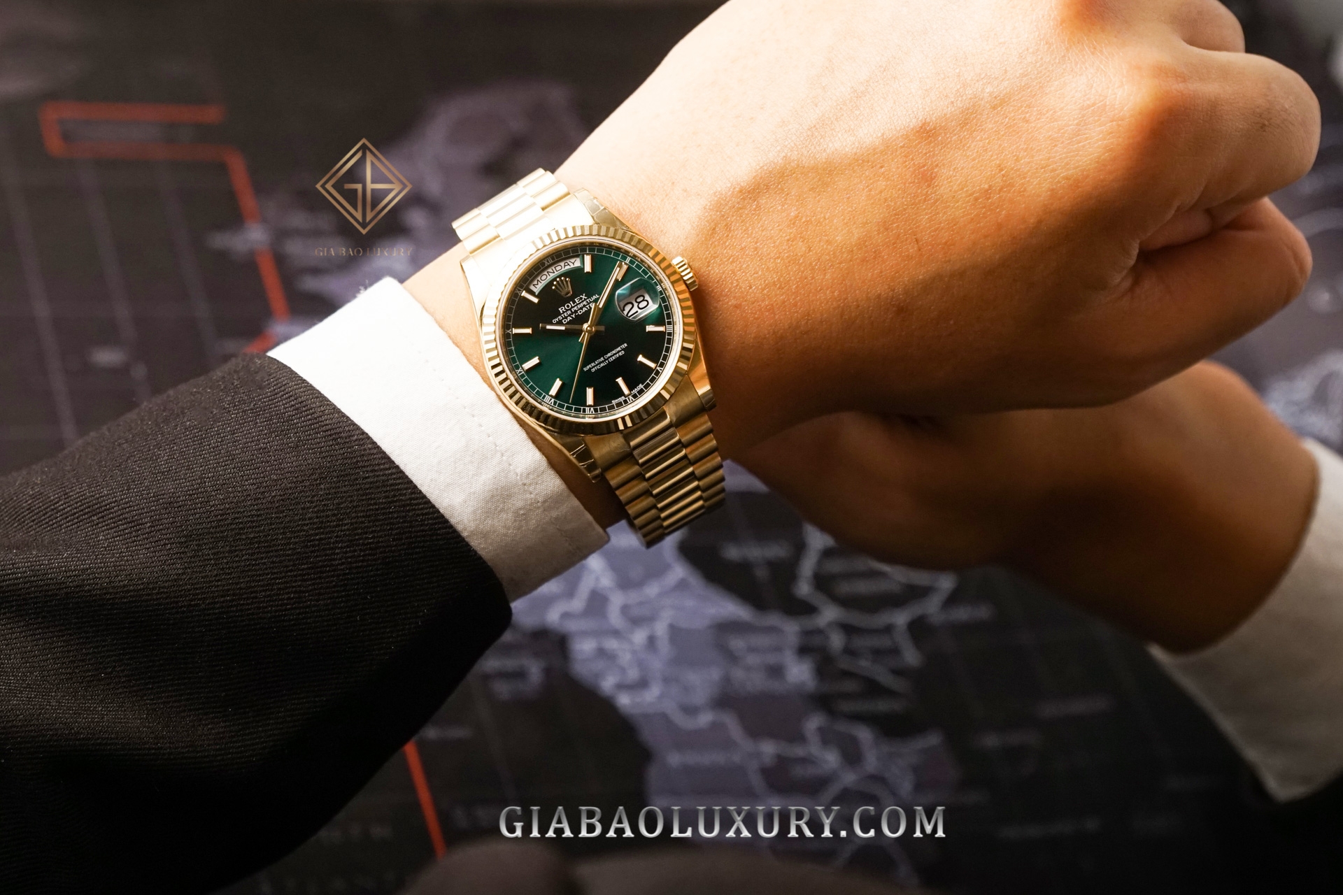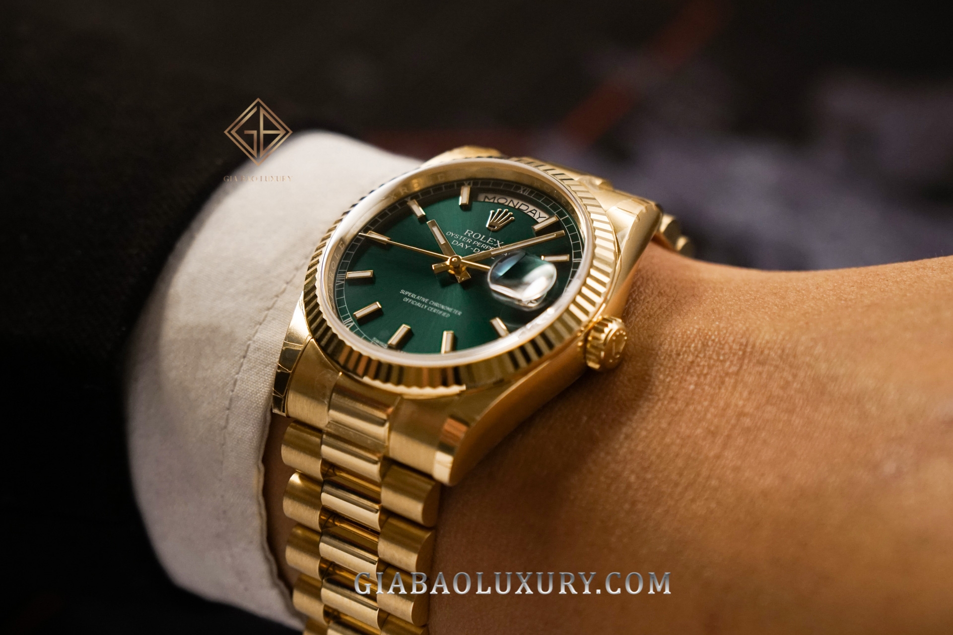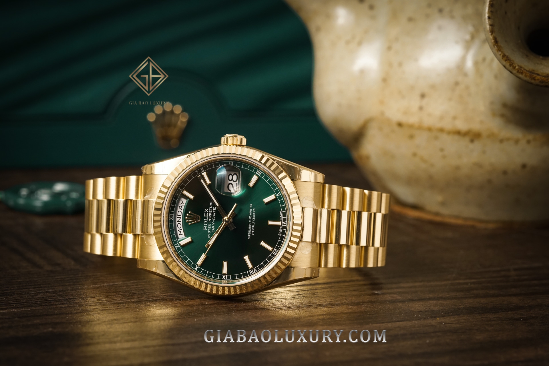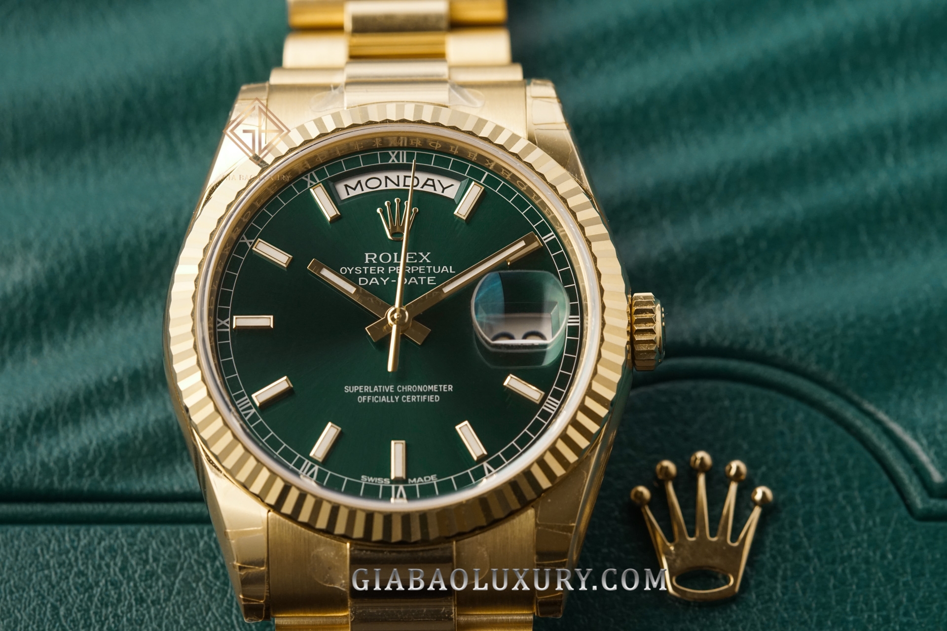 - Đồng hồ Rolex Day-Date 36 118238 Mặt Số Xanh Lá