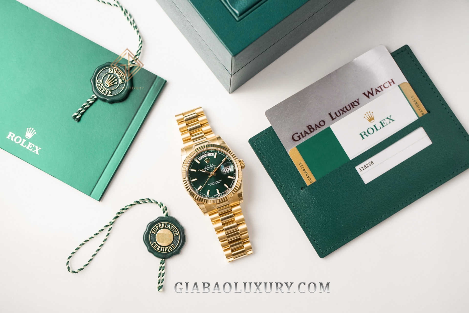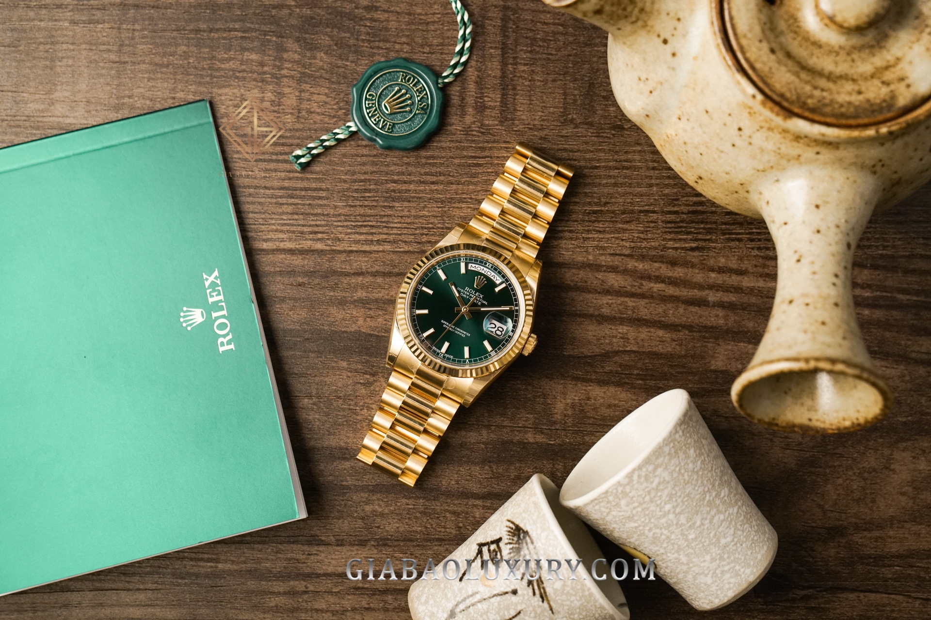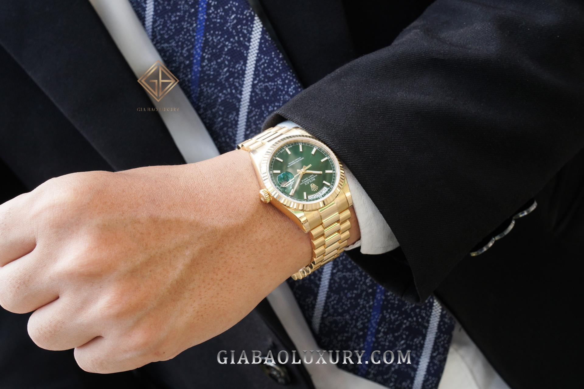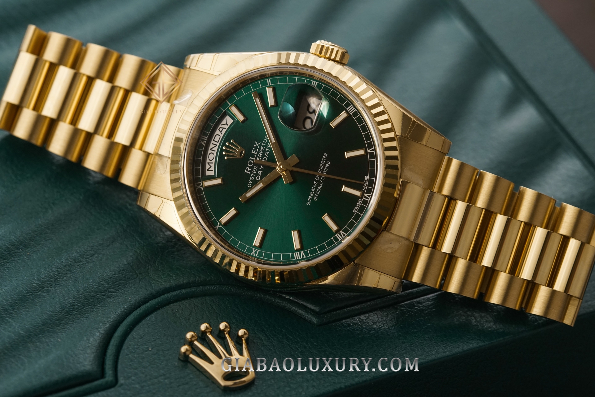 - Đồng hồ Rolex Day-Date 36 118238 Mặt Số Xanh Lá