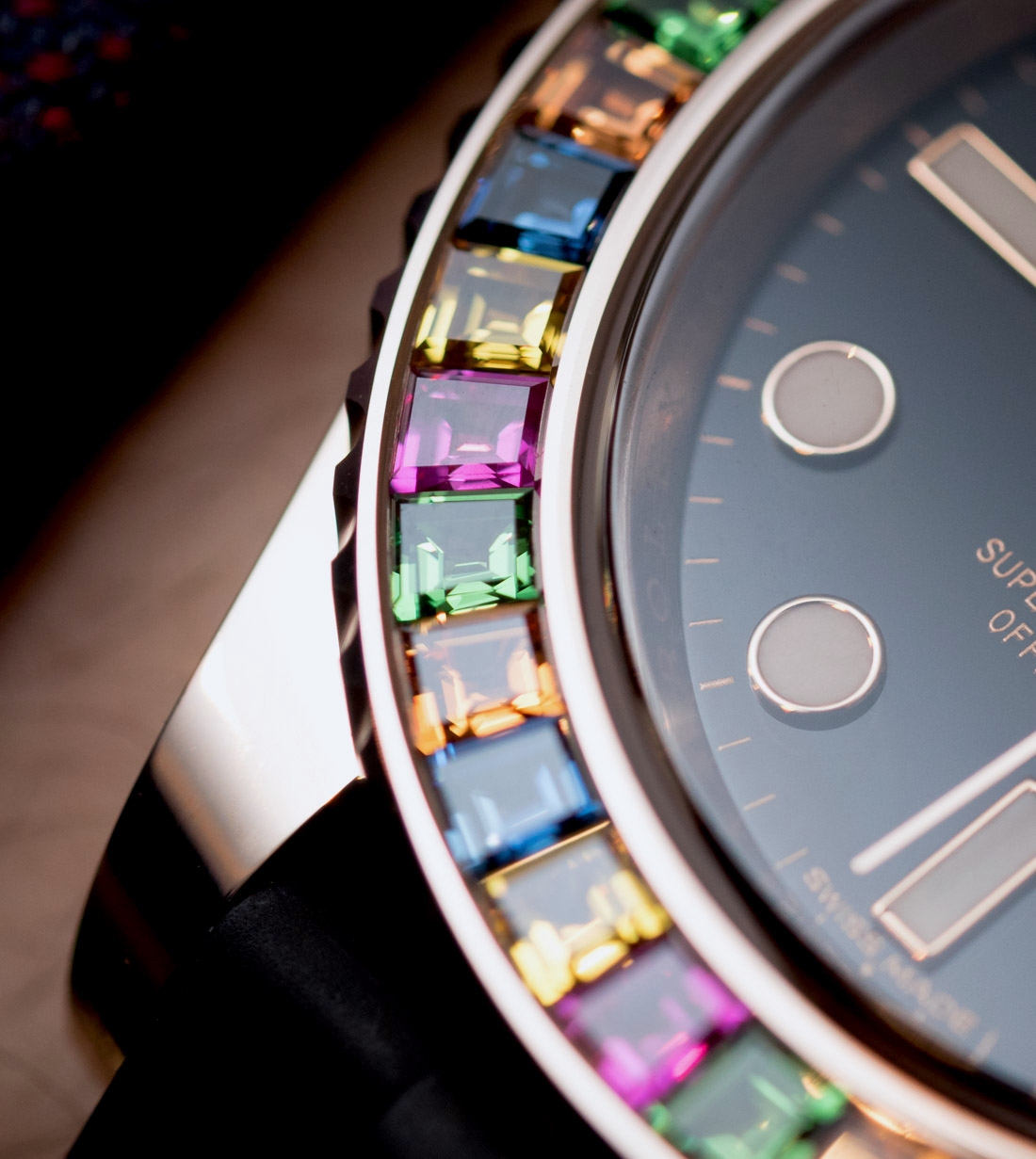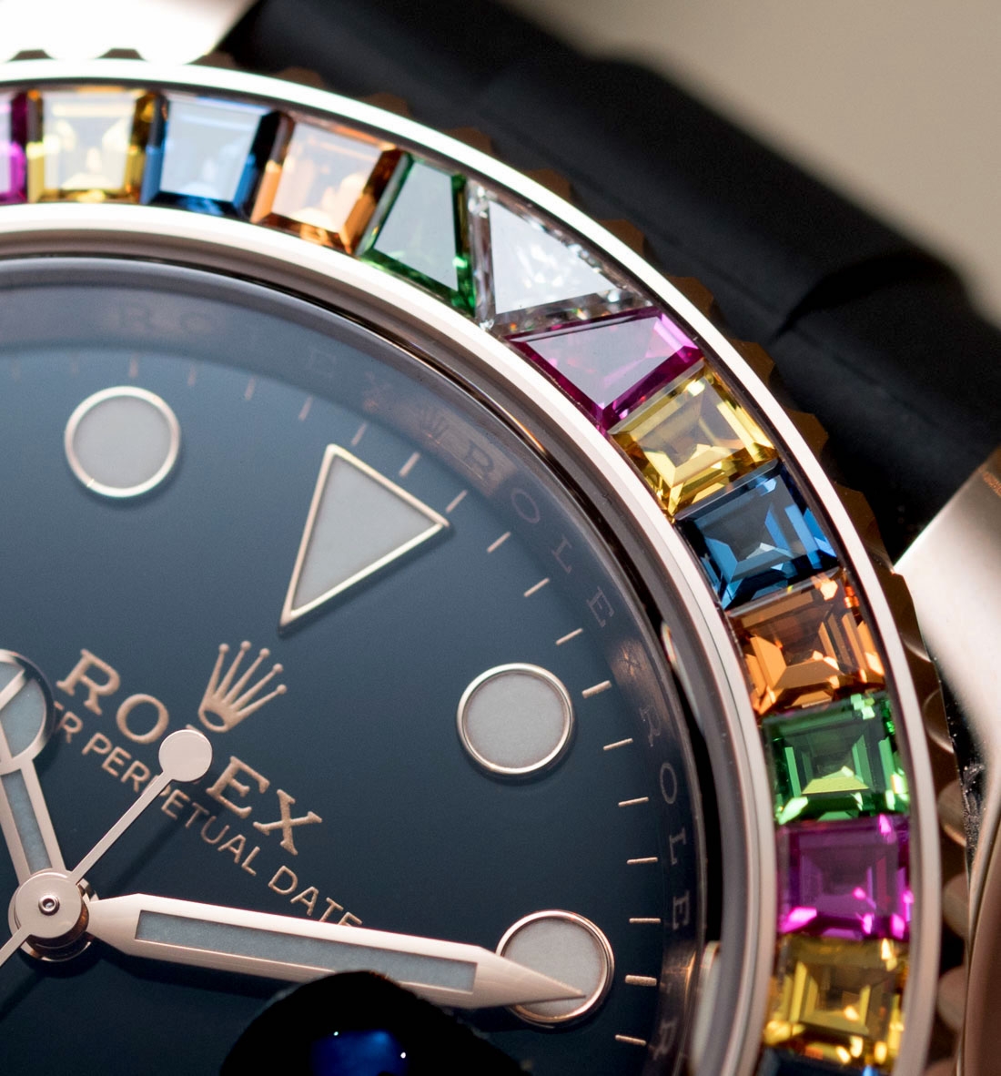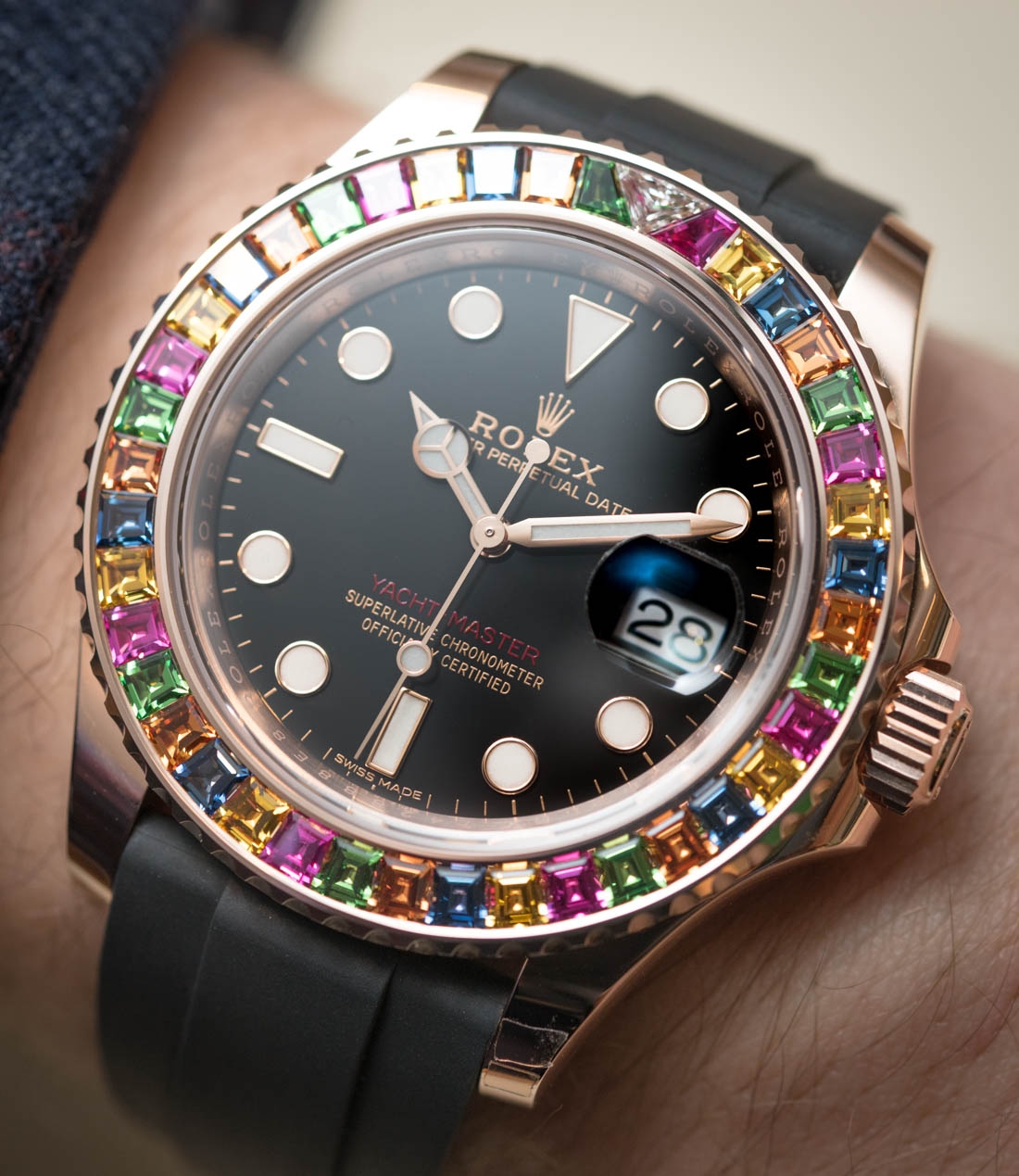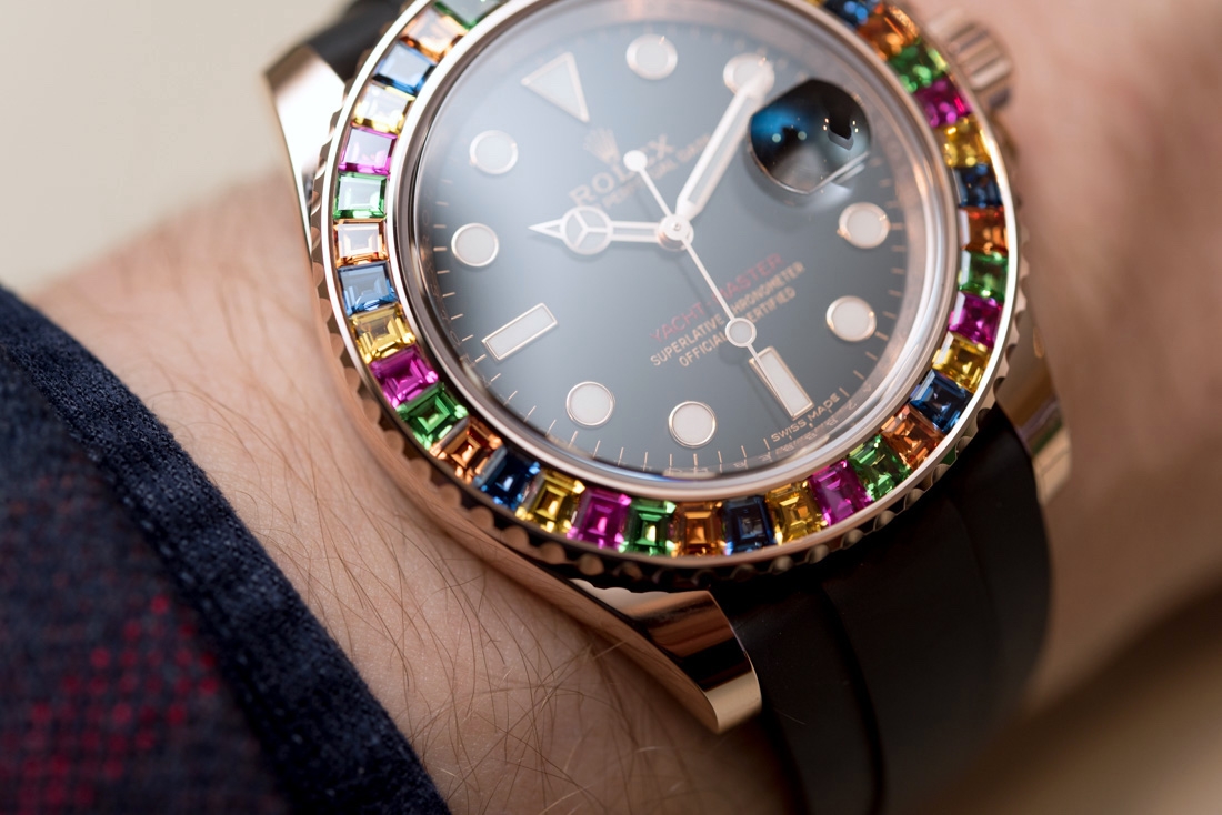 Tại triển lãm Baselworld 2017, chúng tôi đã thấy chiếc Rolex Yacht-Master 40 116695 SATS với vành bezel nạm đá quý. Đó không phải là chiếc đồng hồ Rolex dành cho người hâm mộ thông thường nhưng nếu bạn là một fan Rolex dư dả tài chính thì chiếc Yacht-Master 40 với dây đeo Oysterflex thực sự rất đáng để có mặt trong bộ sưu tập. Sự xuất hiện của phiên bản Rolex Yacht-Master 40 ra mắt năm 2015 với dây đeo cao su Oysterflex đã nhanh chóng thu hút sự chú ý của giới mộ điệu và tạo bàn đạp để Rolex tiếp tục ra mắt phiên bản Daytona với dây đeo Oysterflex trong năm 2017.