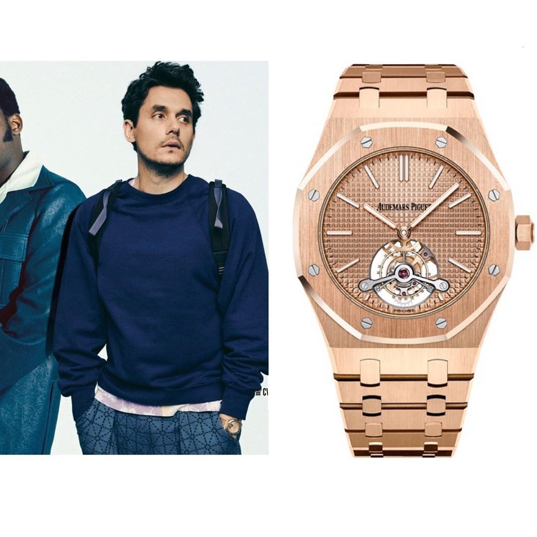 Một trong những chiếc đồng hồ nổi bật của John Mayer là chiếc AP vàng hồng có thêm lồng tourbillon trên mặt số góc 5 giờ. Mang mã hiệu Reference-26515OR, chiếc Audemars Piguet Royal Oak trên tay John Mayer chỉ được sản xuất với số lượng giới hạn là 25 chiếc, với giá bán lẻ là 180.400 USD.
