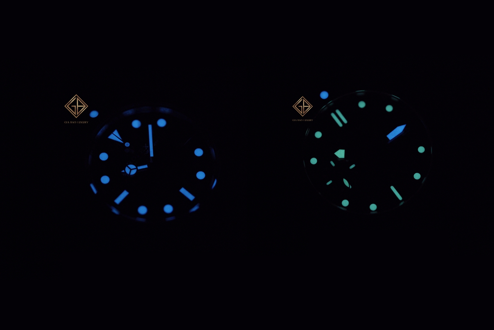 Với chiếc Panerai Submersible PAM00973, chúng ta vẫn sẽ có chất phản quang Super-LumiNova quen thuộc. Điểm khác biệt dễ nhận thấy nhất của Super-LumiNova so với Chromalight là màu sắc trong bóng tối. Chromalight có màu xanh lam, trong khi đó Super-LumiNova có màu xanh lục.