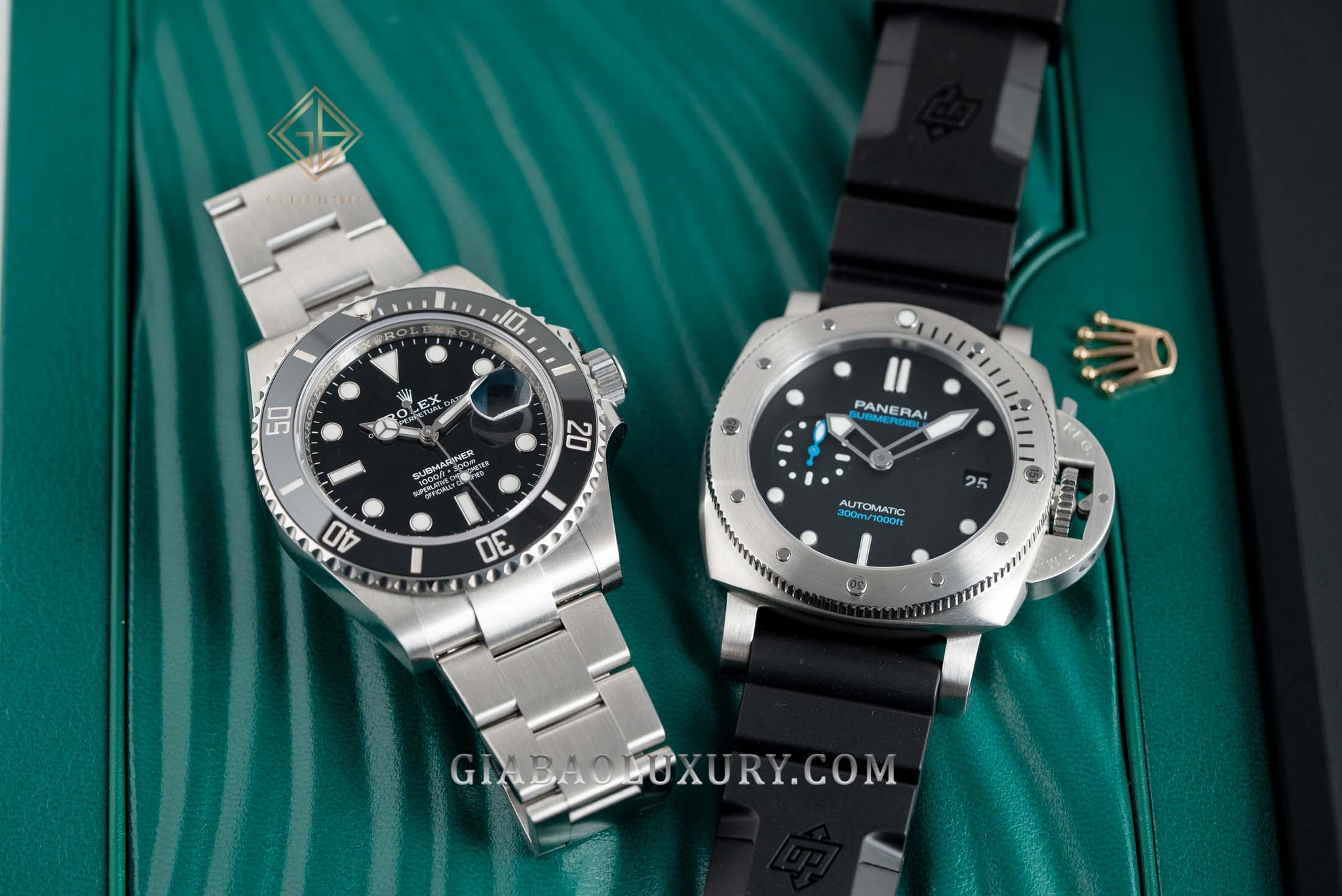 So sánh đồng hồ lặn: Panerai Submersible PAM00973 và Rolex Submariner 126610LN