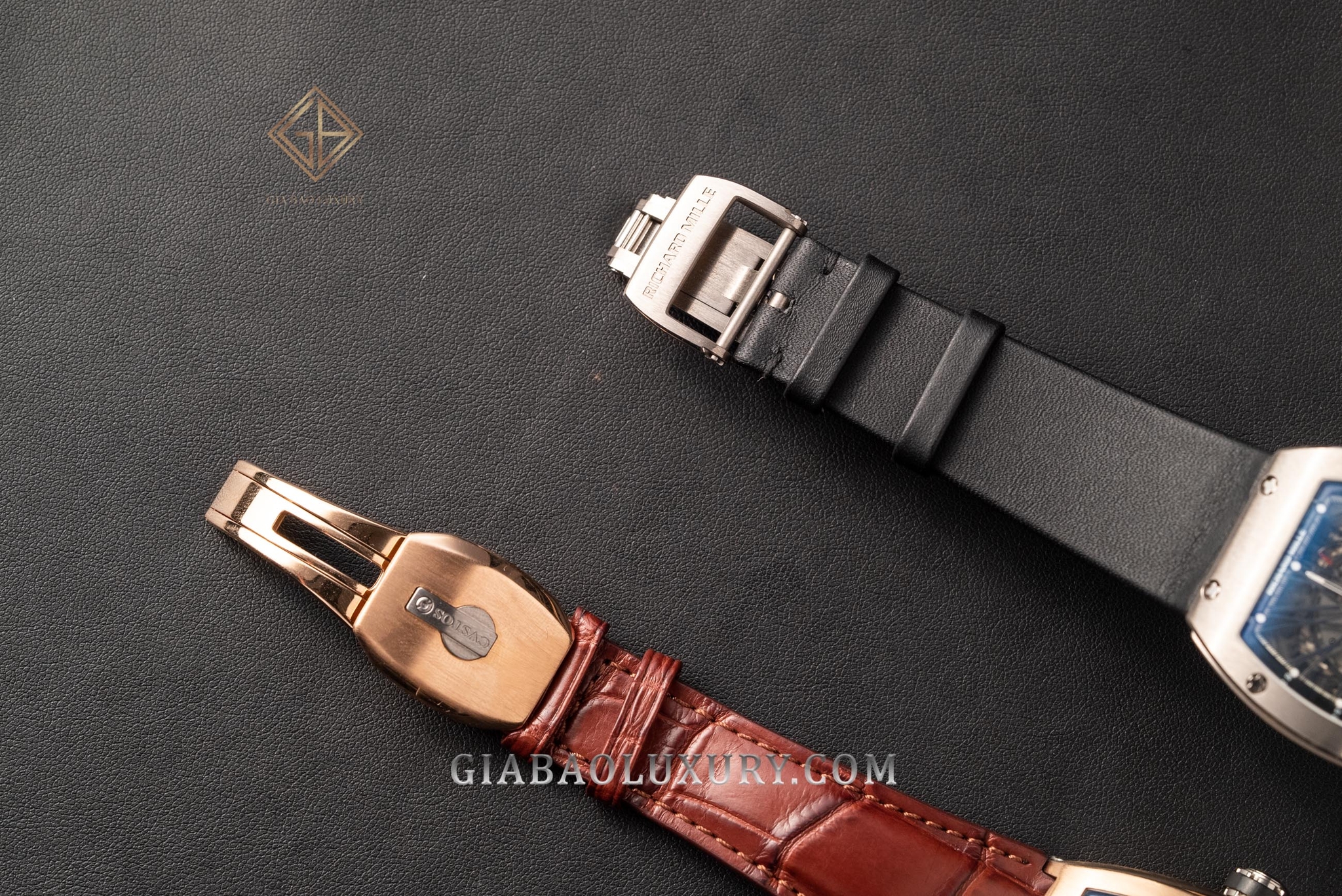 Với một thiết kế đồng hồ thể thao, sự lựa chọn dây đeo cao su hoặc dây đeo kim loại lại được lòng tôi hơn là như dây da mà CVSTOS lựa chọn. Loại cao su mà Richard Mille sử dụng trên chiếc RM 023 được cho cũng là sự sáng tạo trong công trình nghiên cứu vật liệu mới của hãng. Chống nước, chống ăn mòn, nước muối, không thấm nước, không mùi và an toàn tuyệt đối cho da người là những gì thương hiệu Richard Mille cam kết đem tới người tiêu dùng.