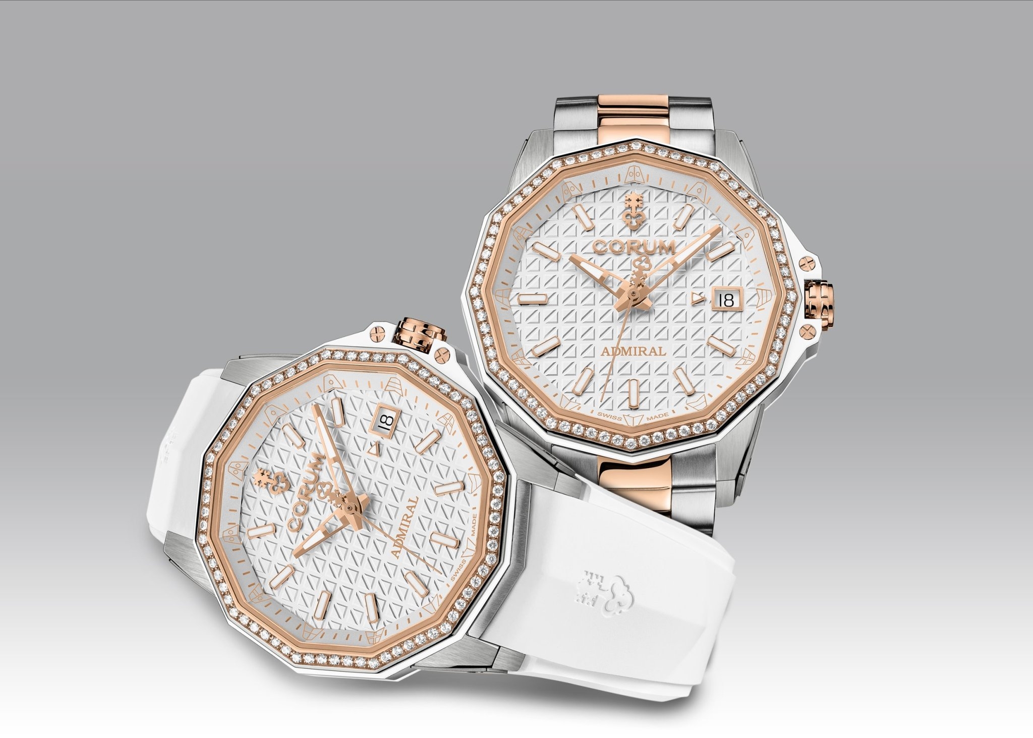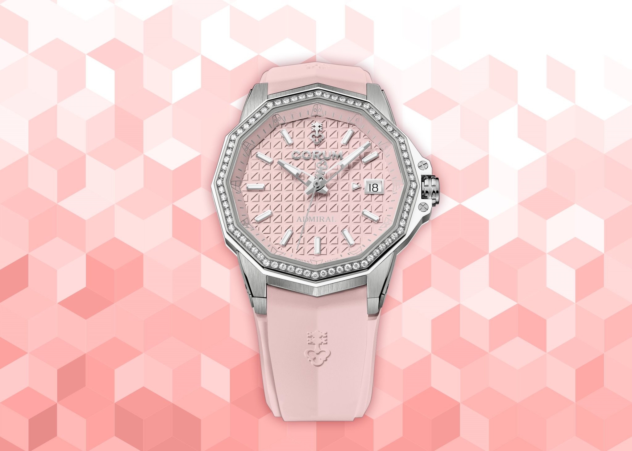 Có thể thu nhỏ và thay đổi màu sắc khiến những fan hâm mộ trung thành của một số dòng đồng hồ biểu tượng không mấy hài lòng. Corum Admiral 38 Automatic là chiếc đồng hồ được gói gọn lại trong kích thước 38mm và thêm vào sắc hồng ngọt ngào. Chiếc đồng hồ Corum Admiral 38 Automatic có thiết kế vành bezel 12 cạnh cá tính đã được điểm thêm 72 viên kim cương nhỏ tinh tế.